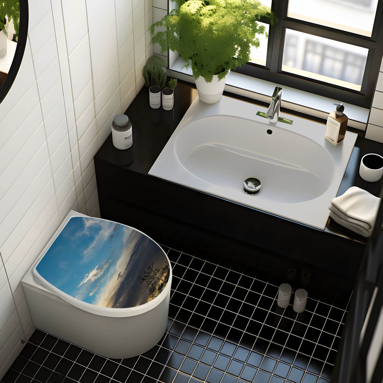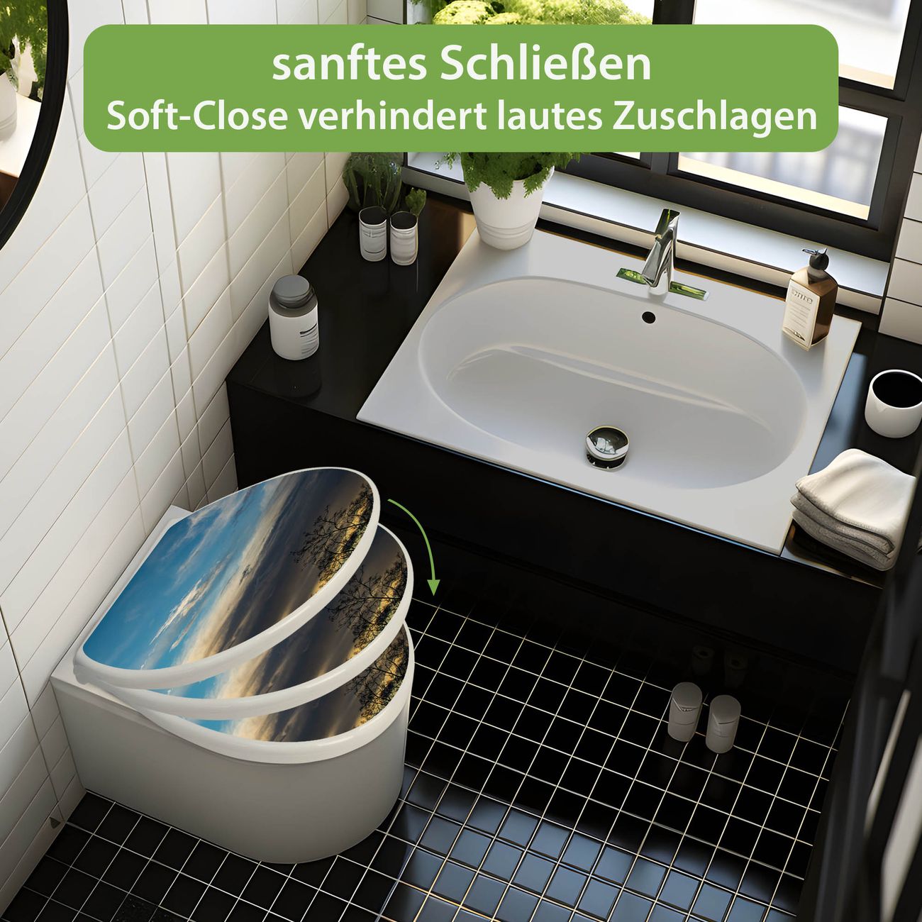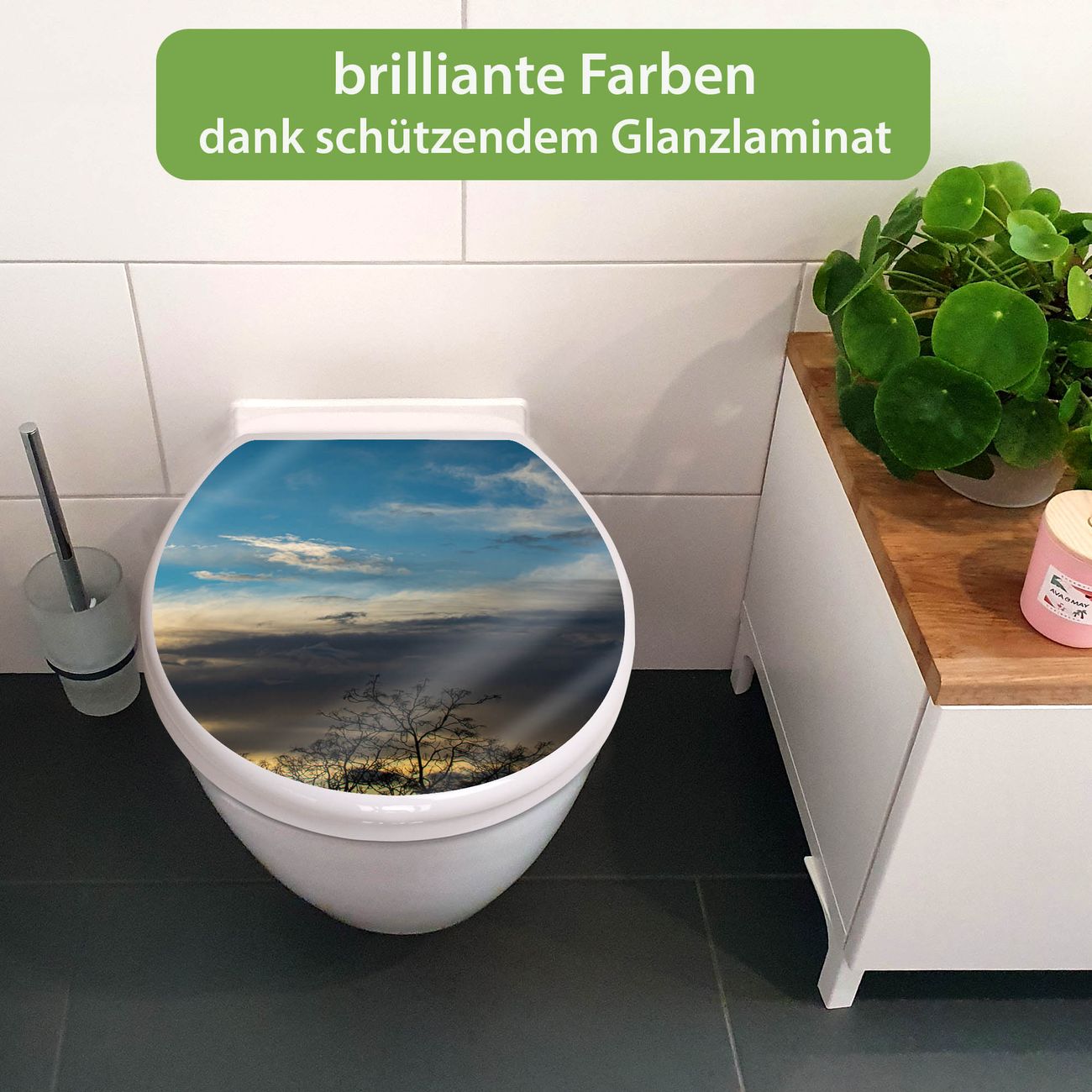 Toilettendeckel weiß mit Absenkautomatik Motiv Wolken 7