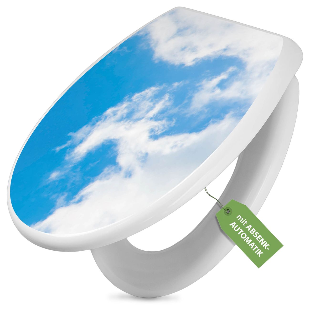 Toilettendeckel weiß mit Absenkautomatik Motiv Wolken 9