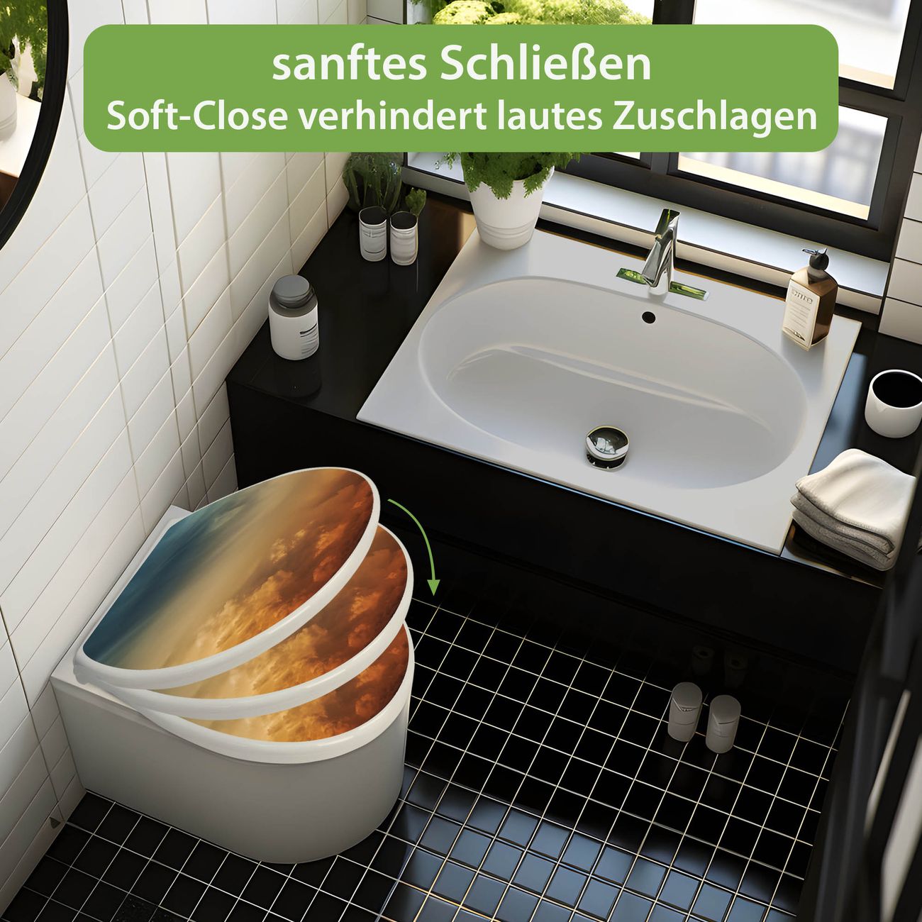 Toilettendeckel weiß mit Absenkautomatik Motiv Wolken in der Dämmerung