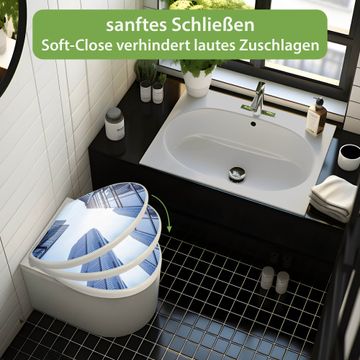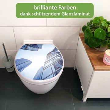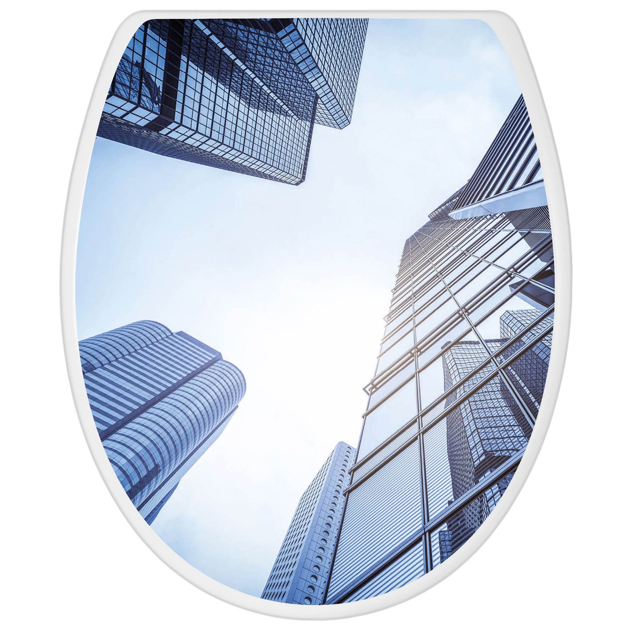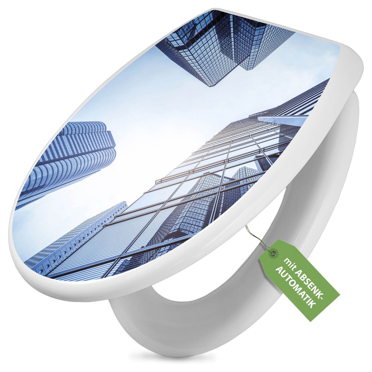 Toilettendeckel weiß mit Absenkautomatik Motiv Wolkenkratzer