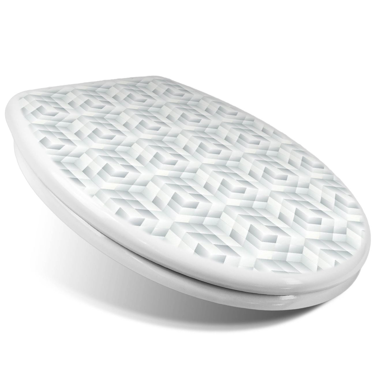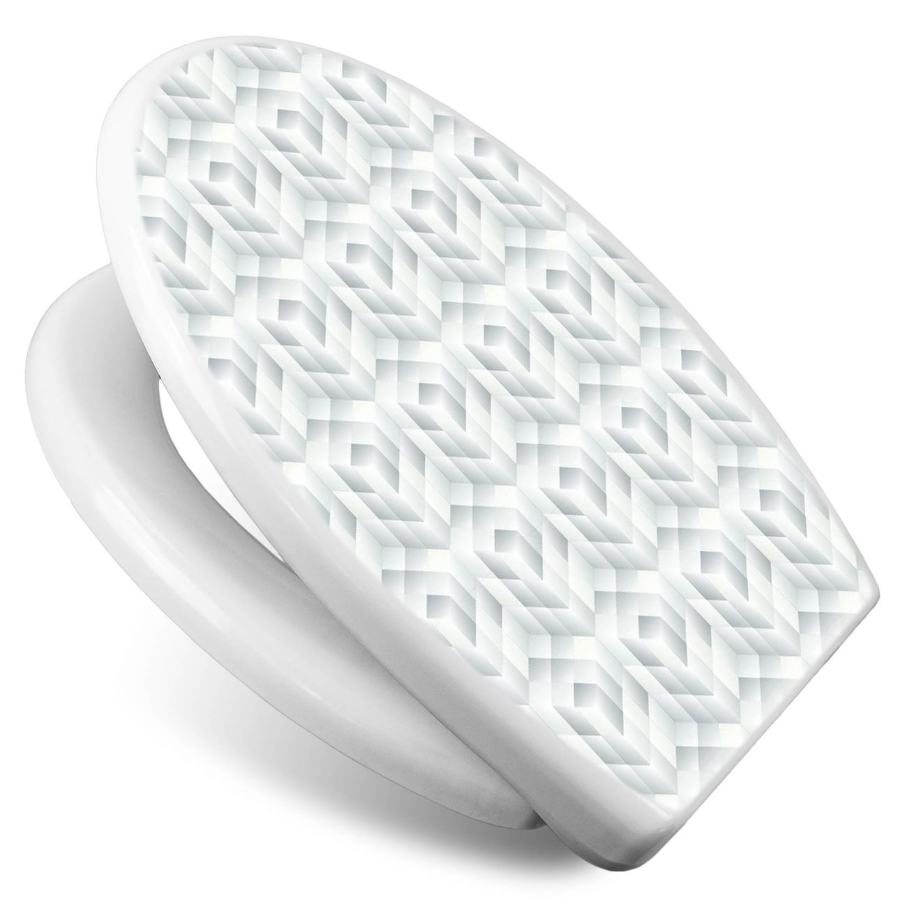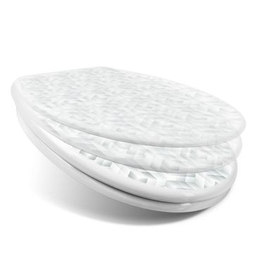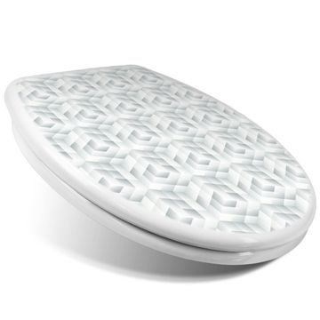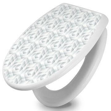 Toilettendeckel weiß mit Absenkautomatik Motiv Würfel Grau