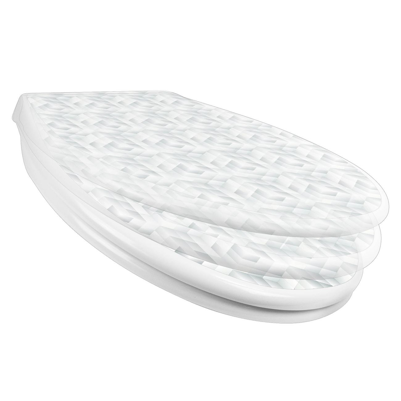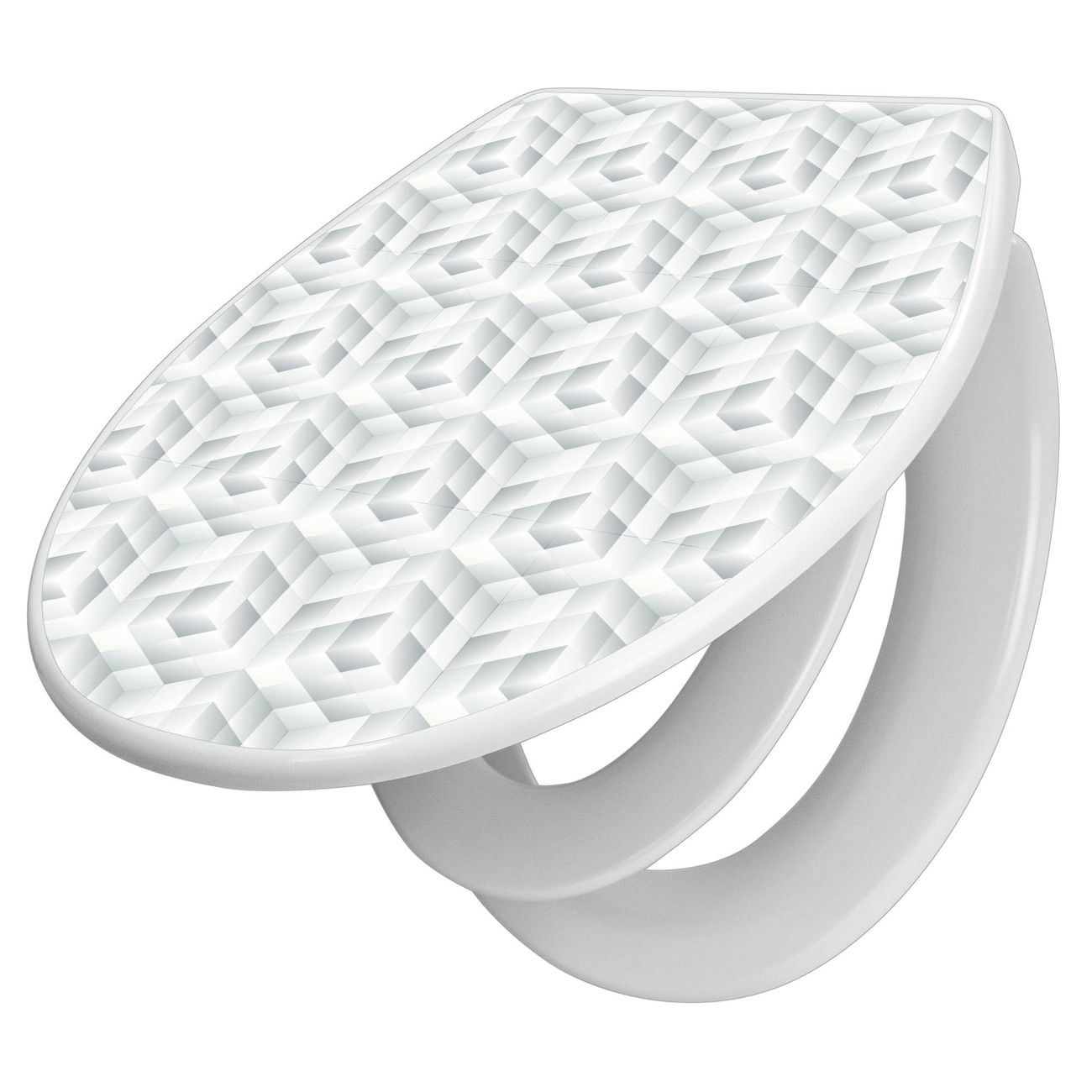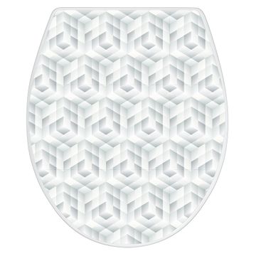 Toilettendeckel weiß mit Absenkautomatik Motiv Würfel Grau