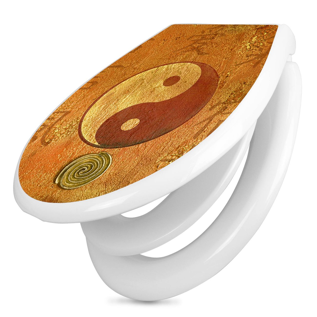 Toilettendeckel weiß mit Absenkautomatik Motiv Yin Yang