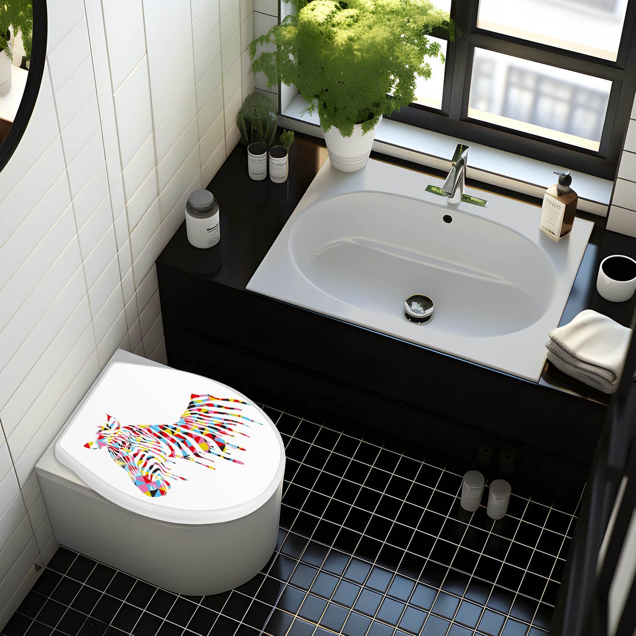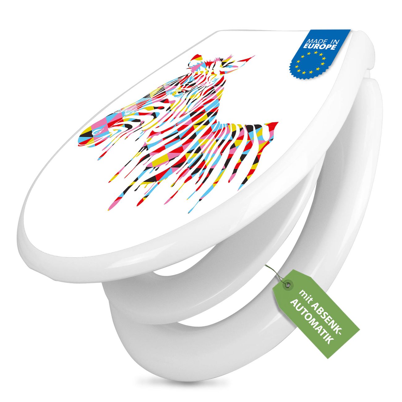 Toilettendeckel weiß mit Absenkautomatik Motiv Zebra