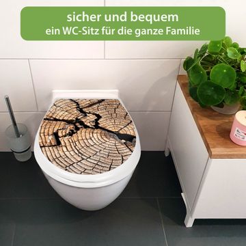FUNKTION:Mit dem banjado Familien WC Sitz mit Absenkautomatik und dem Motiv Motiv Zeichen Der Zeit verbinden Sie Design mit Funktionalität. Sie erhalten den Toilettendeckel in bewährt guter Qualität mit Montagematerial passend auf alle Euro-WC-Becken. Die Gesamtgröße beträgt 37,1cm x 44,9cm x 5cm, die Grundfarbe ist weiß.</p> DESIGN:Der Klodeckel in weiß mit Motiv Motiv Zeichen Der Zeit hat eine ansprechende Optik, eine besondere Form und ist sehr stabil. Das Motiv besteht aus einer farbbrillianten Motivfolie, die durch ein Schutzlaminat zusätzlich vor Kratzern schützt. Der integrierte Kindersitz fügt sich harmonisch ein. DETAILS:Der Toilettensitz mit Soft Close besteht aus hochwertigem Polypropylen, ist geruchlos, ungiftig und kann mit handelsüblicher Seife gereinigt werden. Die Montage kann von von oben oder von unten erfolgen und ist kinderleicht. NUTZEN:Mit Hilfe der detaillierten Aufbauanleitung ermöglichen wir eine schnelle und unkomplizierte Montage. Die banjado Klobrille ist universell geeignet für alle Euro-WC-Schüsseln. Der Kindersitz kann unkompliziert entfernt werden. BANJADO:Ihr WC-Deckel wird in Sachsen in einer kleinen Manufaktur von Hand veredelt. Die Motivfolie ist lösungsmittelfrei und schutzlaminiert für einen langen Halt. Wir wünschen viel Freude bei der Auswahl eines schönen Motivs.