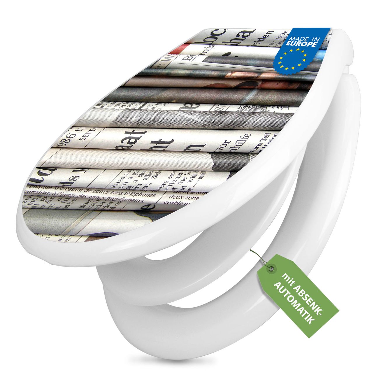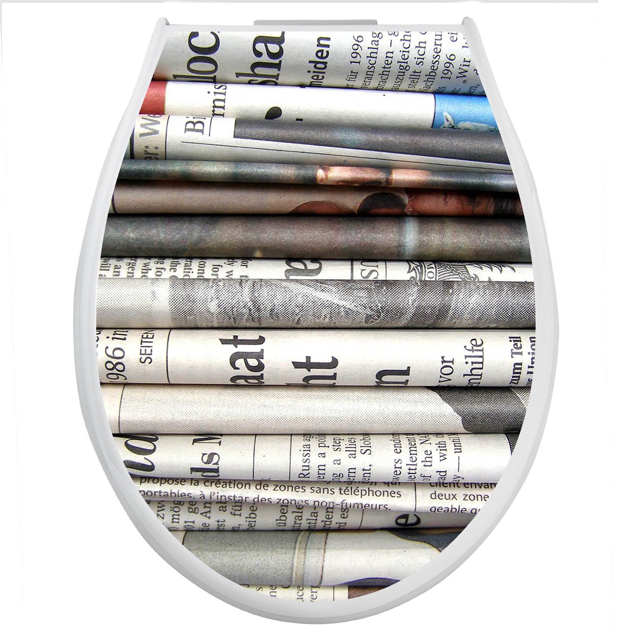 Toilettendeckel weiß mit Absenkautomatik Motiv Zeitungen