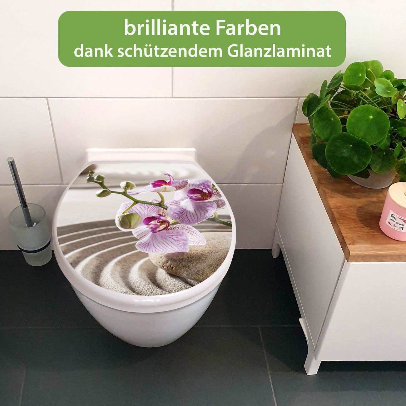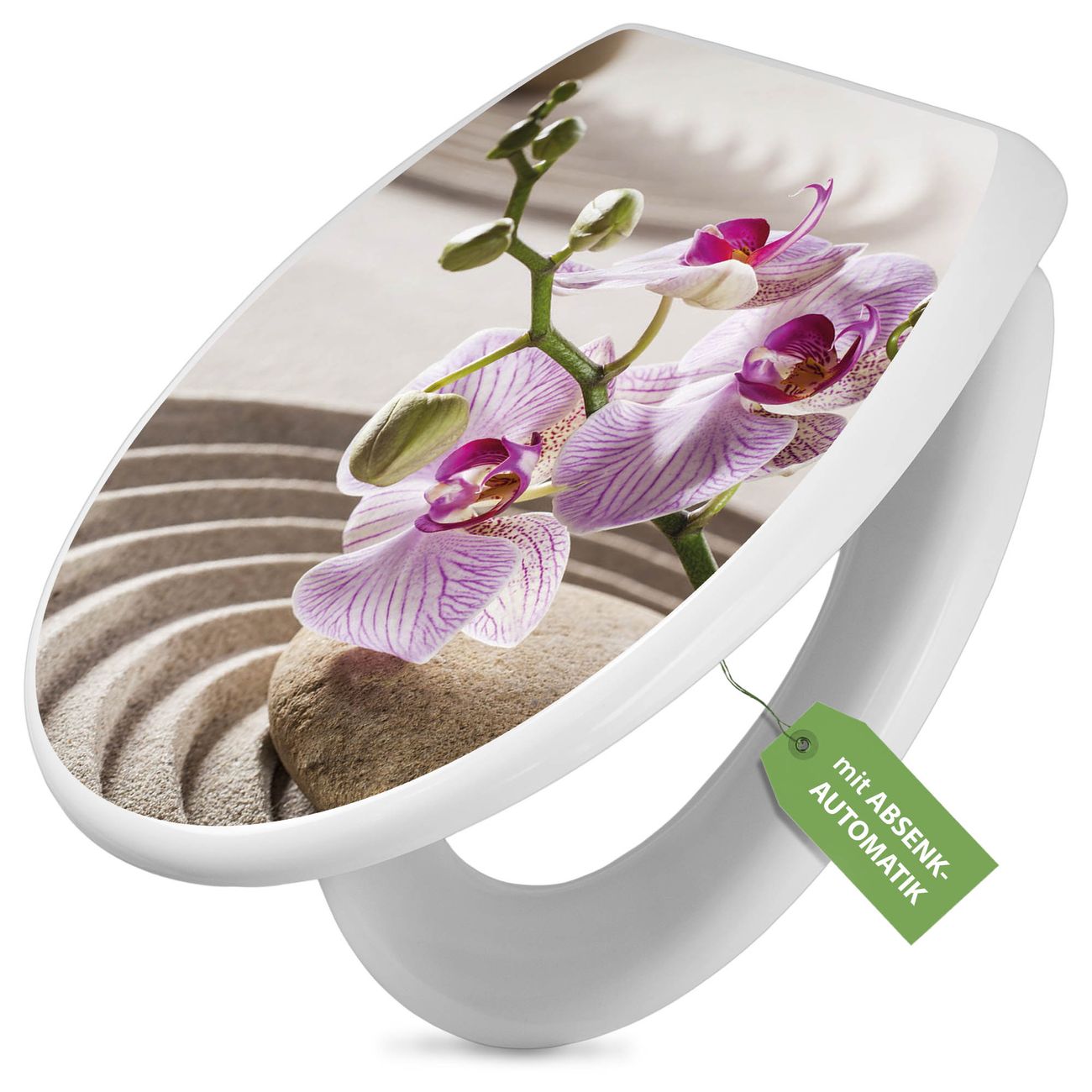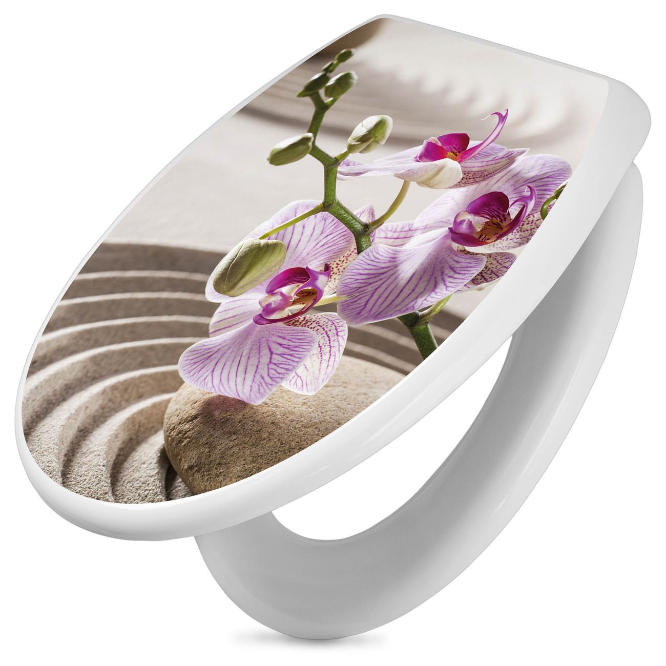 Toilettendeckel weiß mit Absenkautomatik Motiv Zen Relax