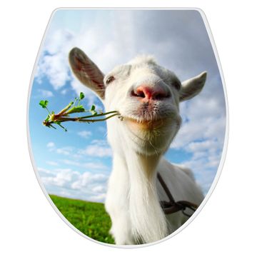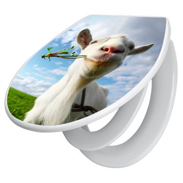 Toilettendeckel weiß mit Absenkautomatik Motiv Ziege 2