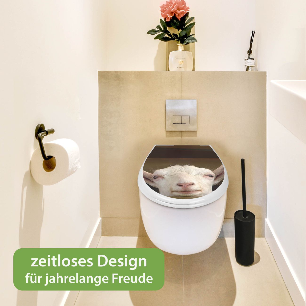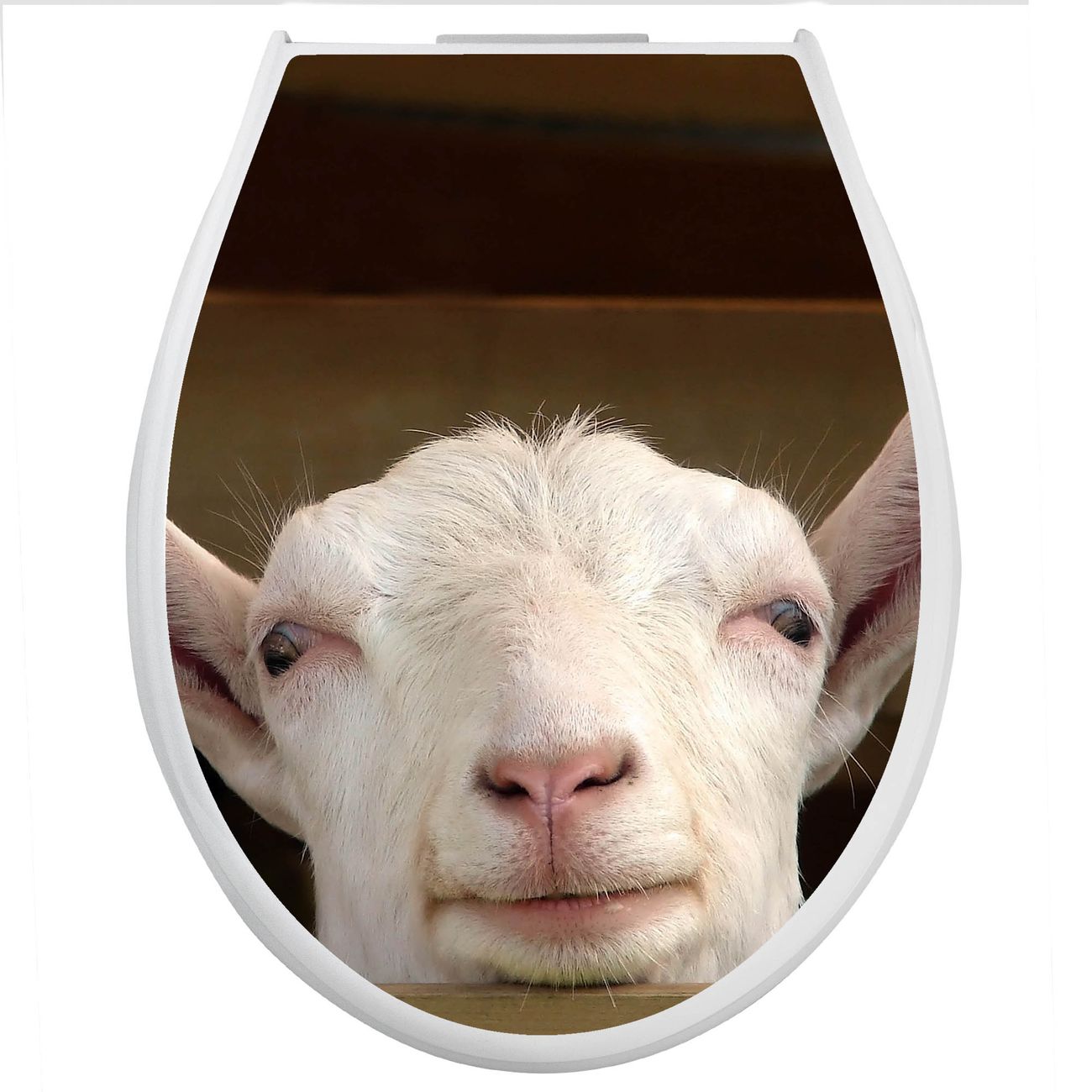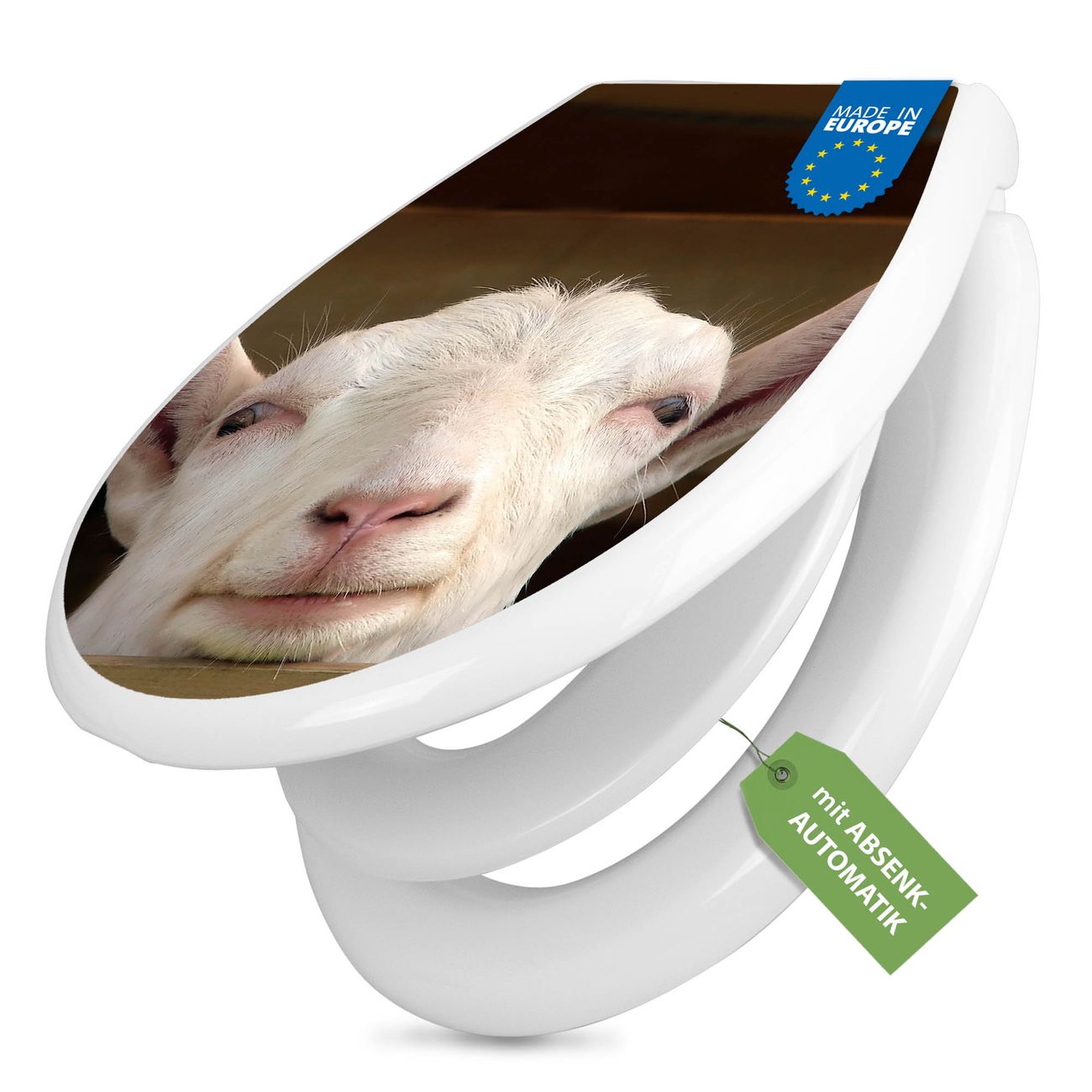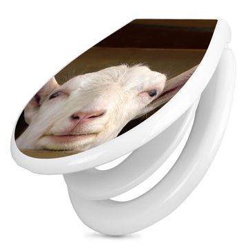 Toilettendeckel weiß mit Absenkautomatik Motiv Ziege