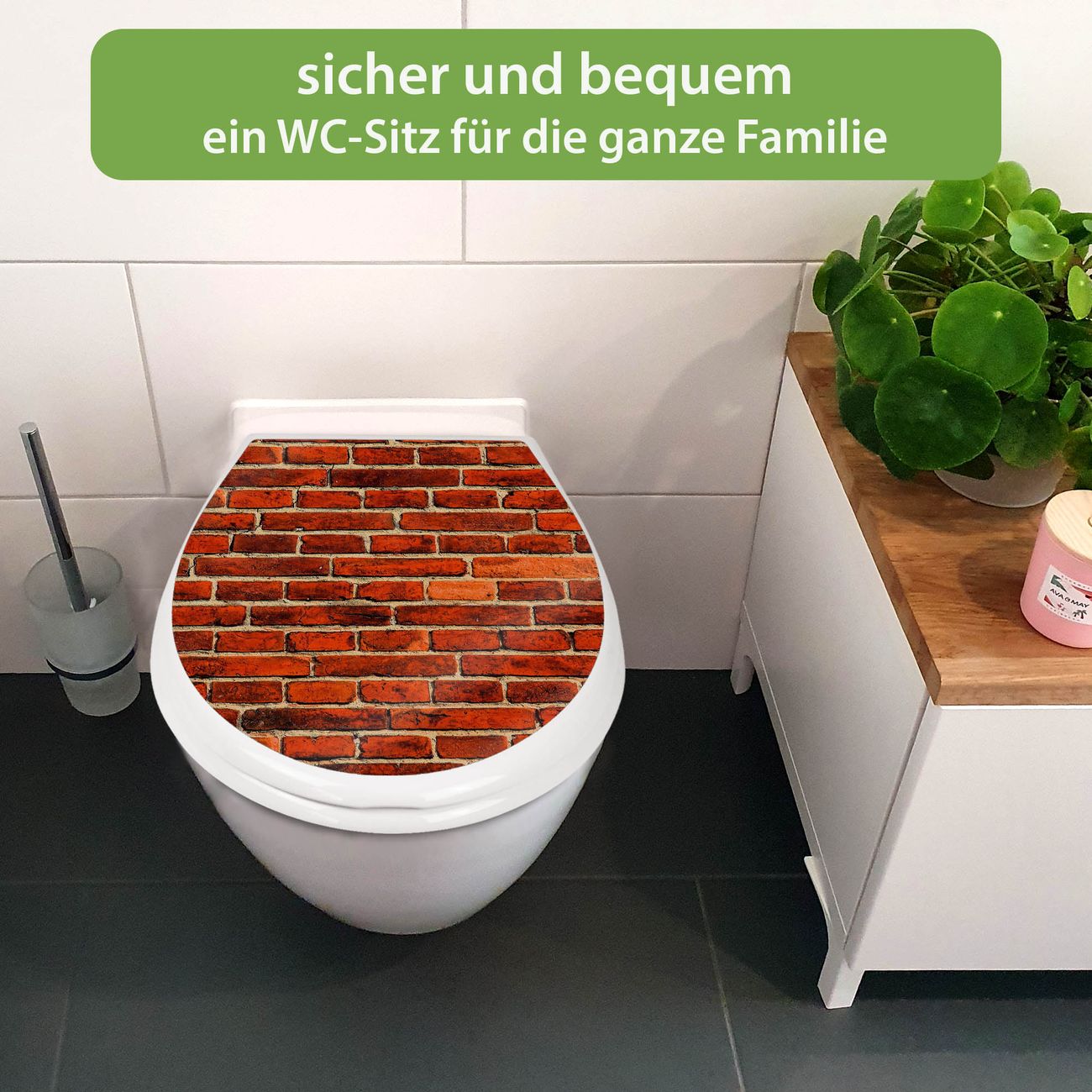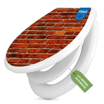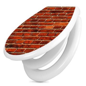Toilettendeckel weiß mit Absenkautomatik Motiv Ziegelwand