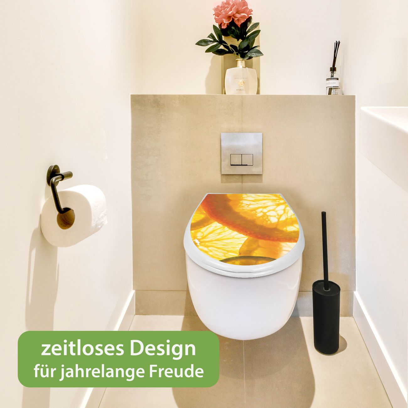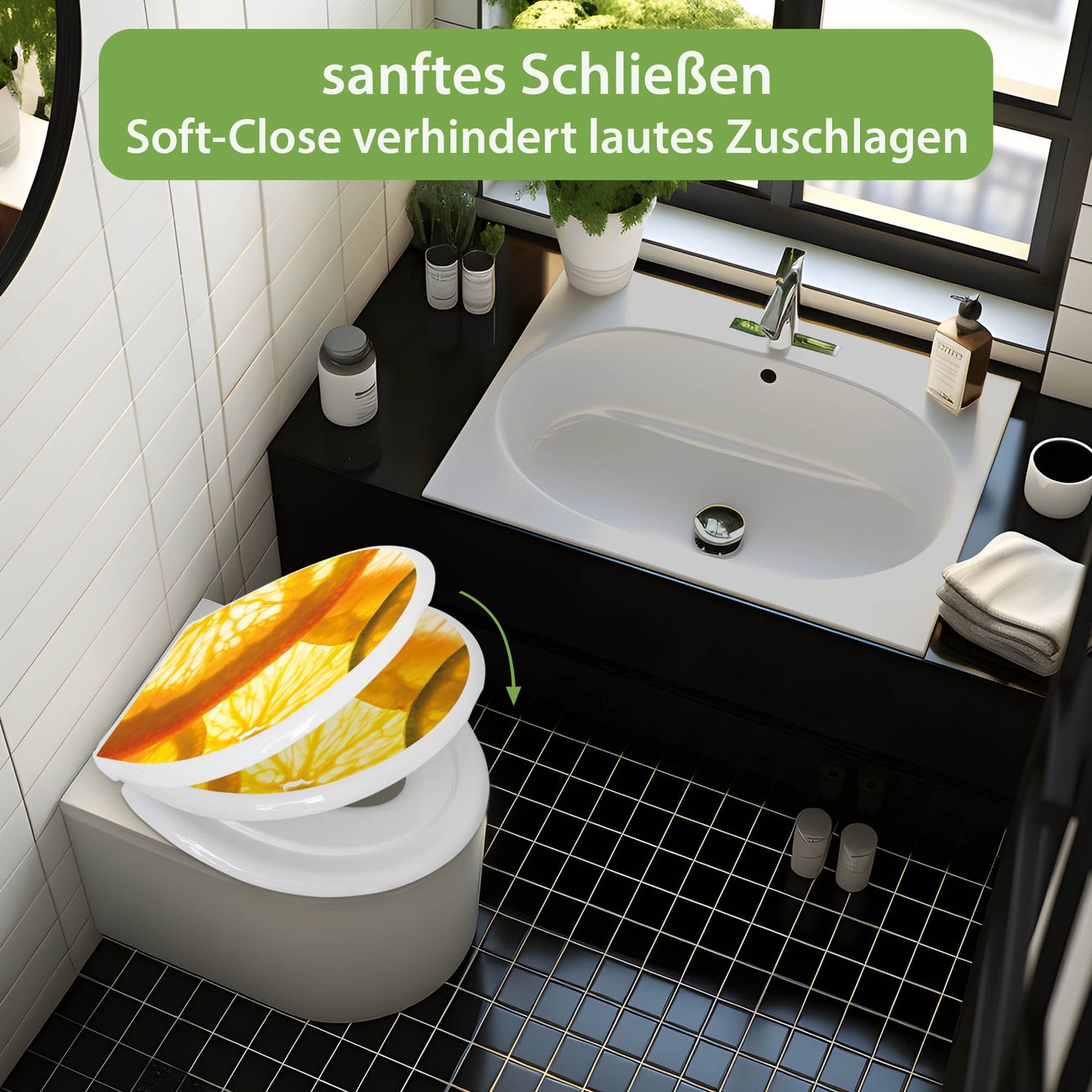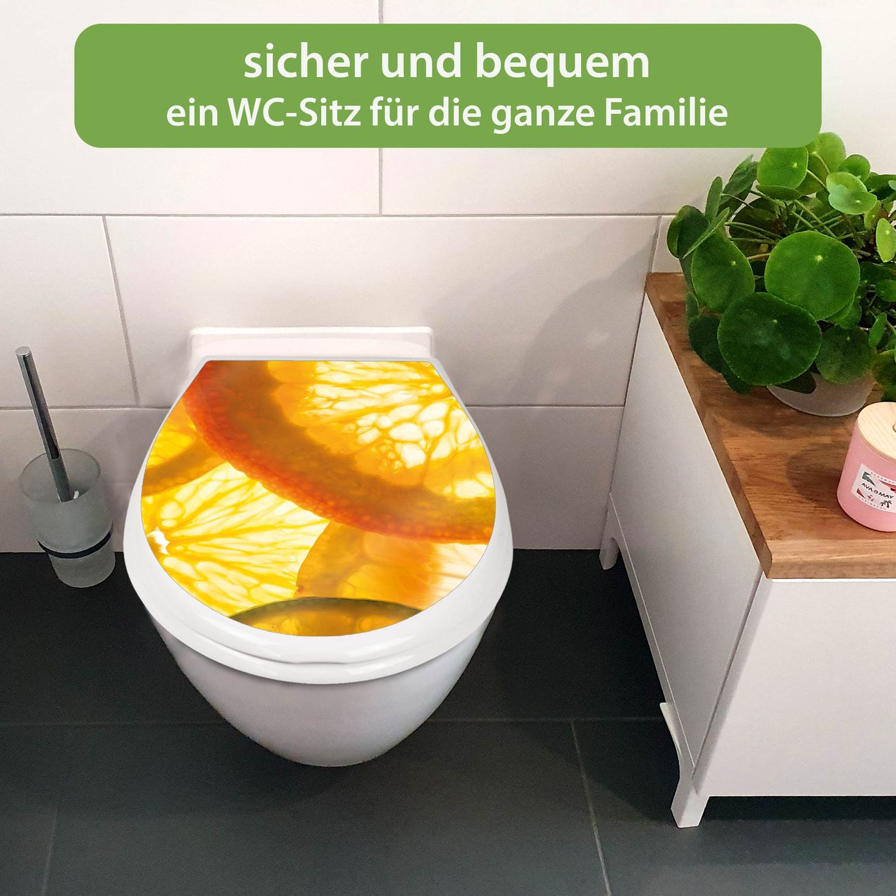 Toilettendeckel weiß mit Absenkautomatik Motiv Zitrusfrüchte