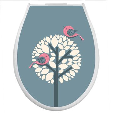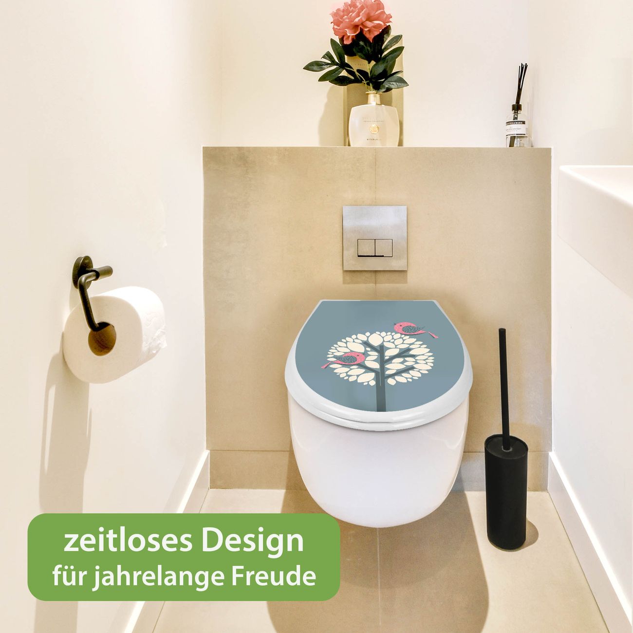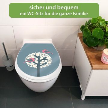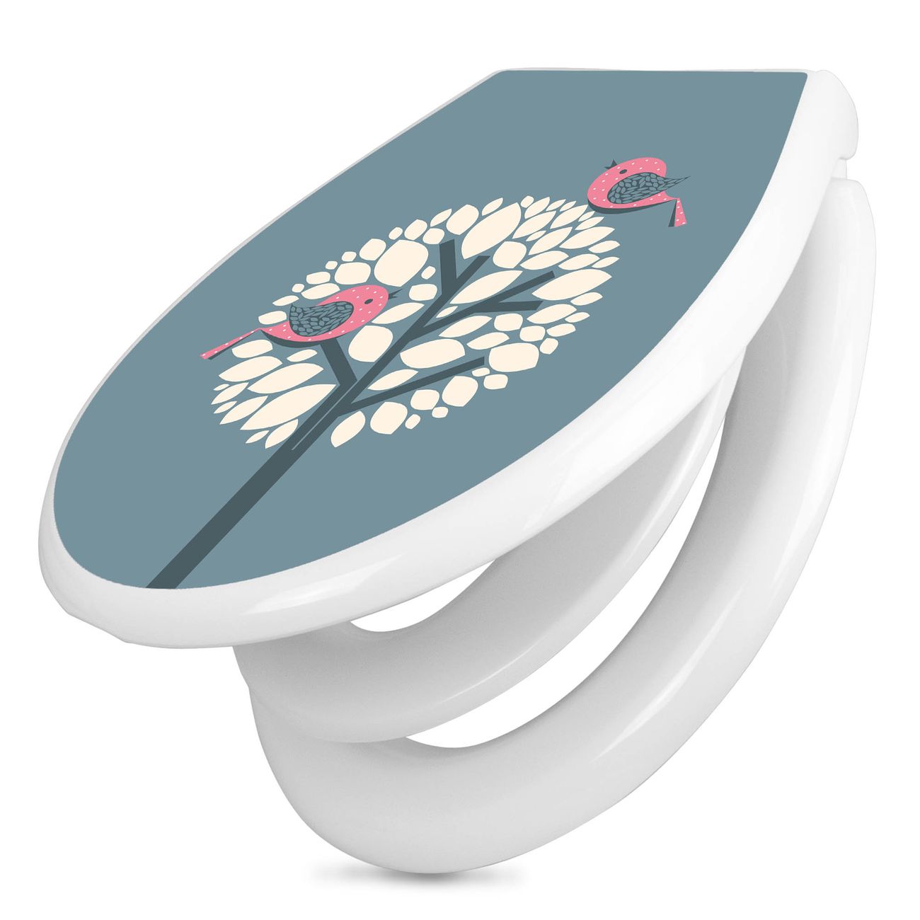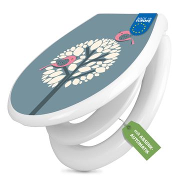 Toilettendeckel weiß mit Absenkautomatik Motiv Zwei Rosa Vögel