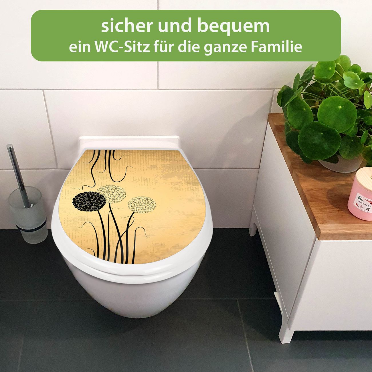 FUNKTION:Mit dem banjado Familien WC Sitz mit Absenkautomatik und dem Motiv Motiv Zwiebel Vintage verbinden Sie Design mit Funktionalität. Sie erhalten den Toilettendeckel in bewährt guter Qualität mit Montagematerial passend auf alle Euro-WC-Becken. Die Gesamtgröße beträgt 37,1cm x 44,9cm x 5cm, die Grundfarbe ist weiß.</p> DESIGN:Der Klodeckel in weiß mit Motiv Motiv Zwiebel Vintage hat eine ansprechende Optik, eine besondere Form und ist sehr stabil. Das Motiv besteht aus einer farbbrillianten Motivfolie, die durch ein Schutzlaminat zusätzlich vor Kratzern schützt. Der integrierte Kindersitz fügt sich harmonisch ein. DETAILS:Der Toilettensitz mit Soft Close besteht aus hochwertigem Polypropylen, ist geruchlos, ungiftig und kann mit handelsüblicher Seife gereinigt werden. Die Montage kann von von oben oder von unten erfolgen und ist kinderleicht. NUTZEN:Mit Hilfe der detaillierten Aufbauanleitung ermöglichen wir eine schnelle und unkomplizierte Montage. Die banjado Klobrille ist universell geeignet für alle Euro-WC-Schüsseln. Der Kindersitz kann unkompliziert entfernt werden. BANJADO:Ihr WC-Deckel wird in Sachsen in einer kleinen Manufaktur von Hand veredelt. Die Motivfolie ist lösungsmittelfrei und schutzlaminiert für einen langen Halt. Wir wünschen viel Freude bei der Auswahl eines schönen Motivs.