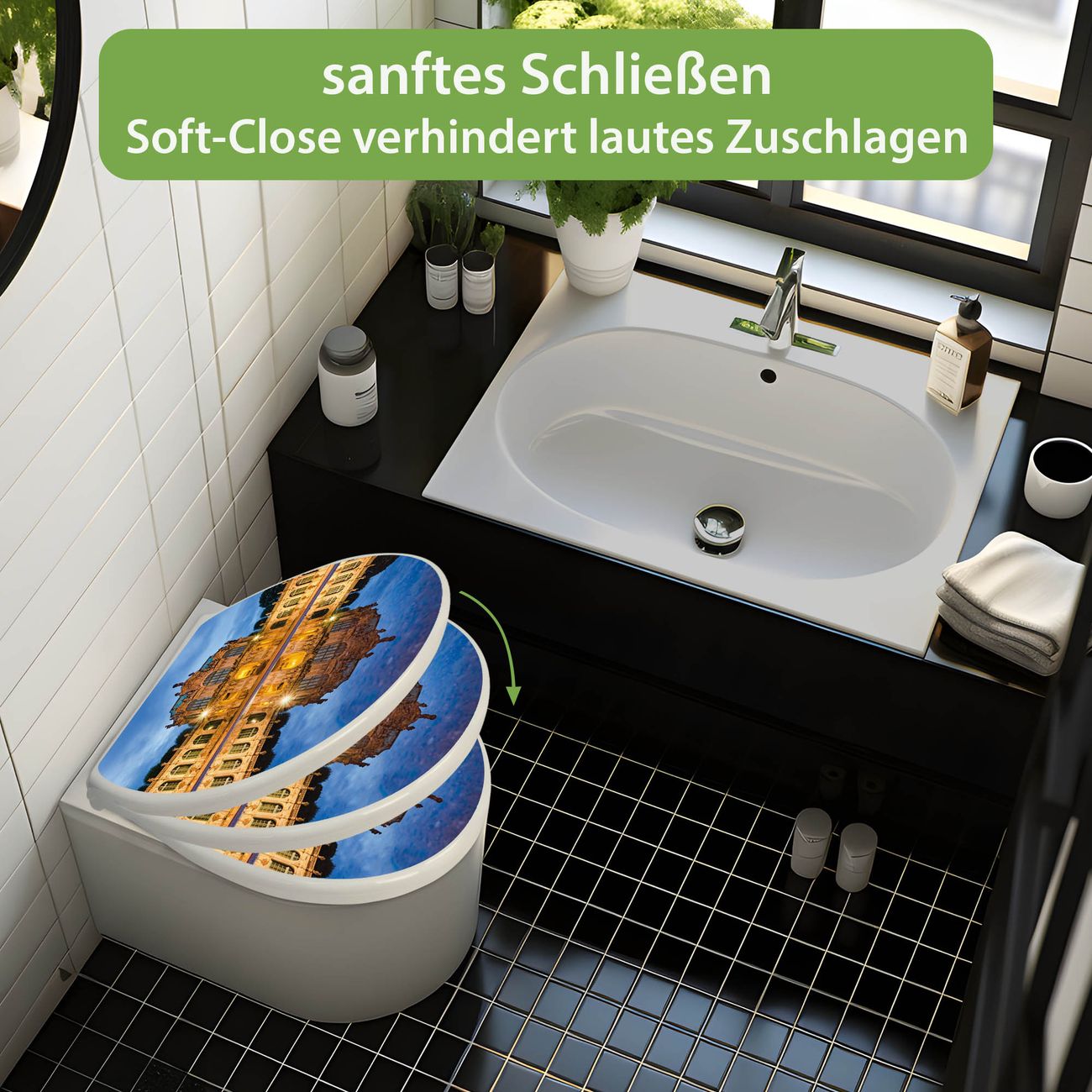 Toilettendeckel weiß mit Absenkautomatik Motiv Zwinger Dresden