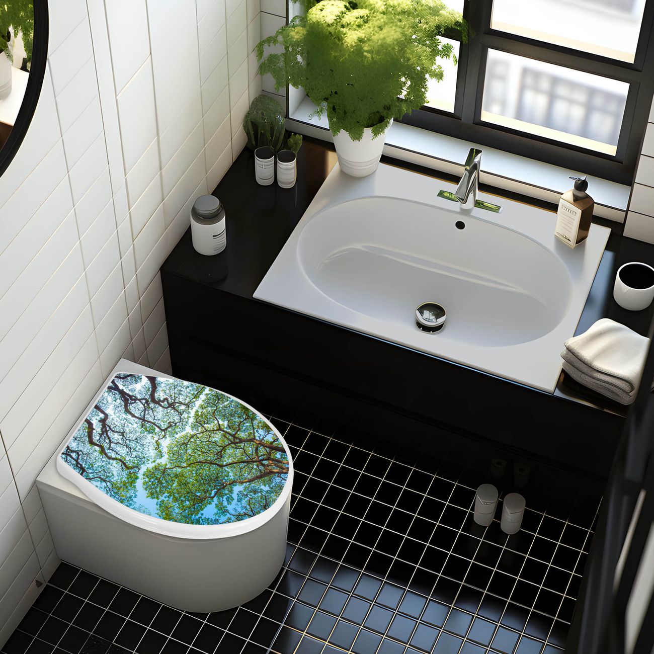 Toilettendeckel weiß mit Absenkautomatik Motiv Zwischen Bäumen 2