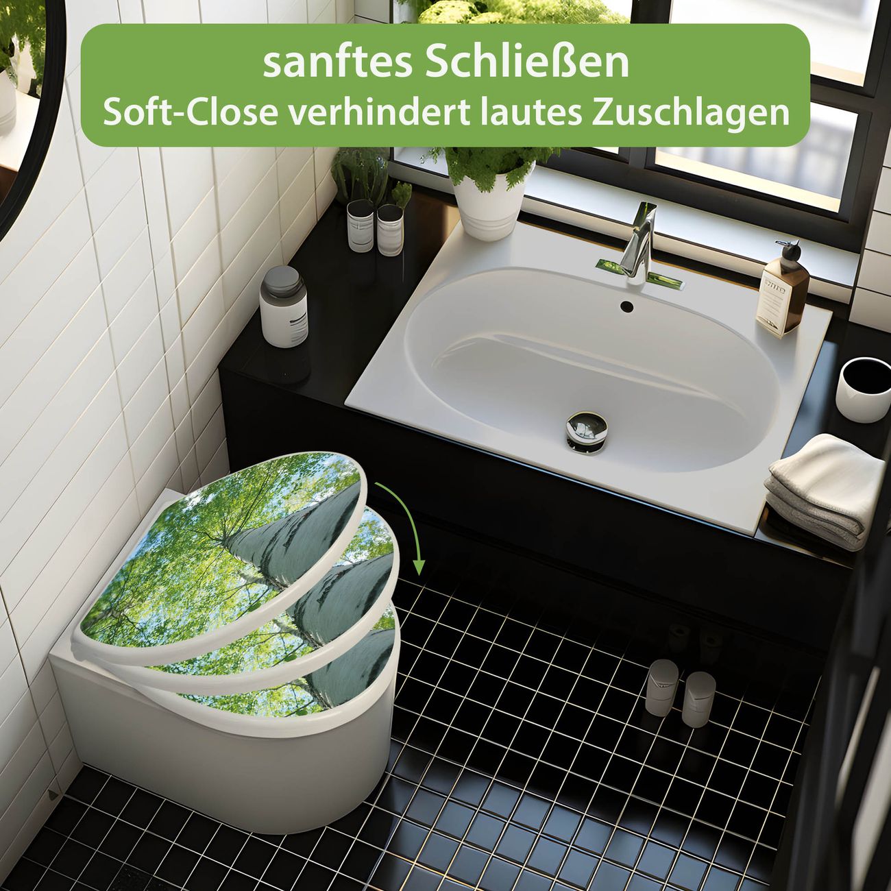 Toilettendeckel weiß mit Absenkautomatik Motiv Zwischen Bäumen 5