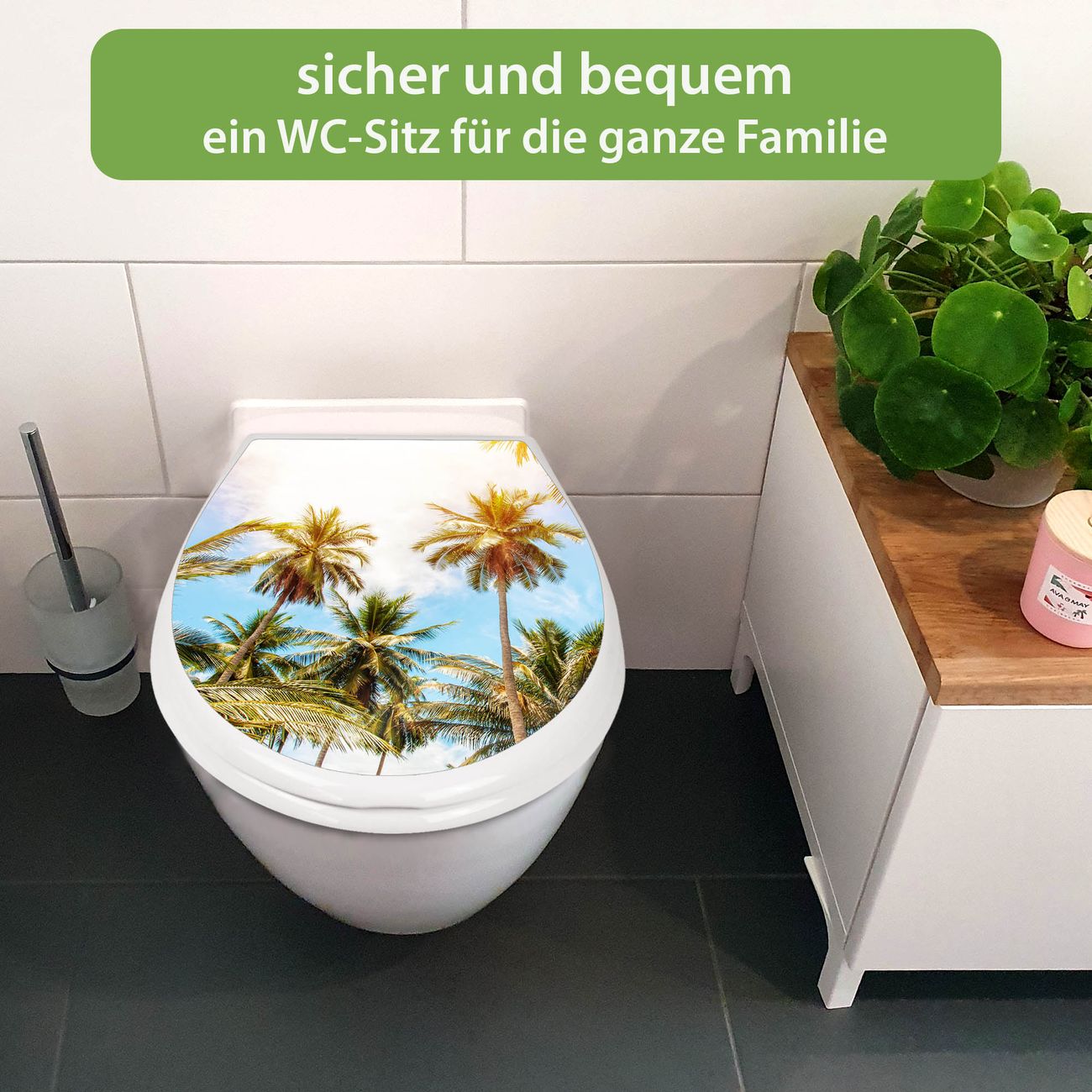 Toilettendeckel weiß mit Absenkautomatik Motiv Zwischen Palmen