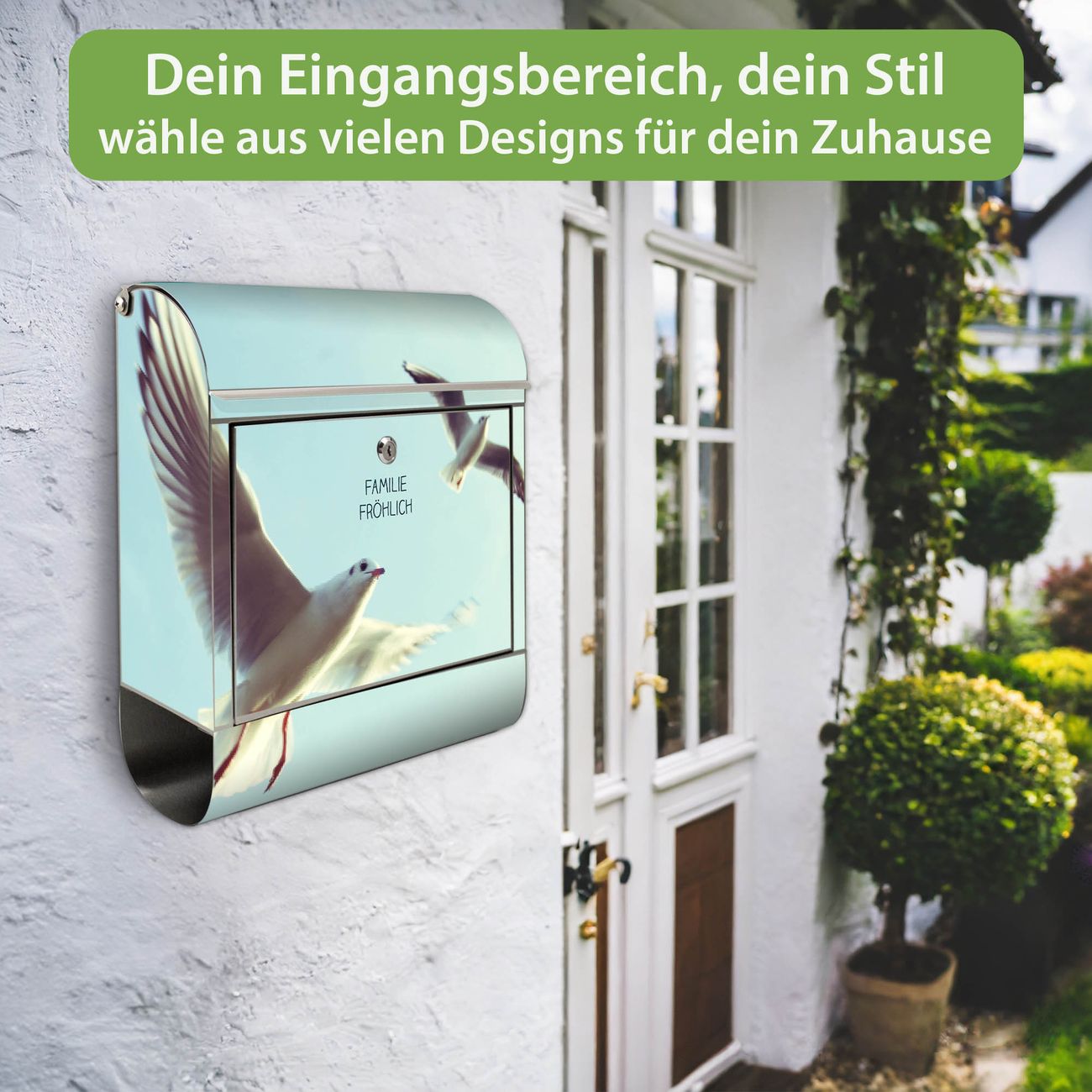 Wandbriefkasten Edelstahl Motiv 2 Möwen