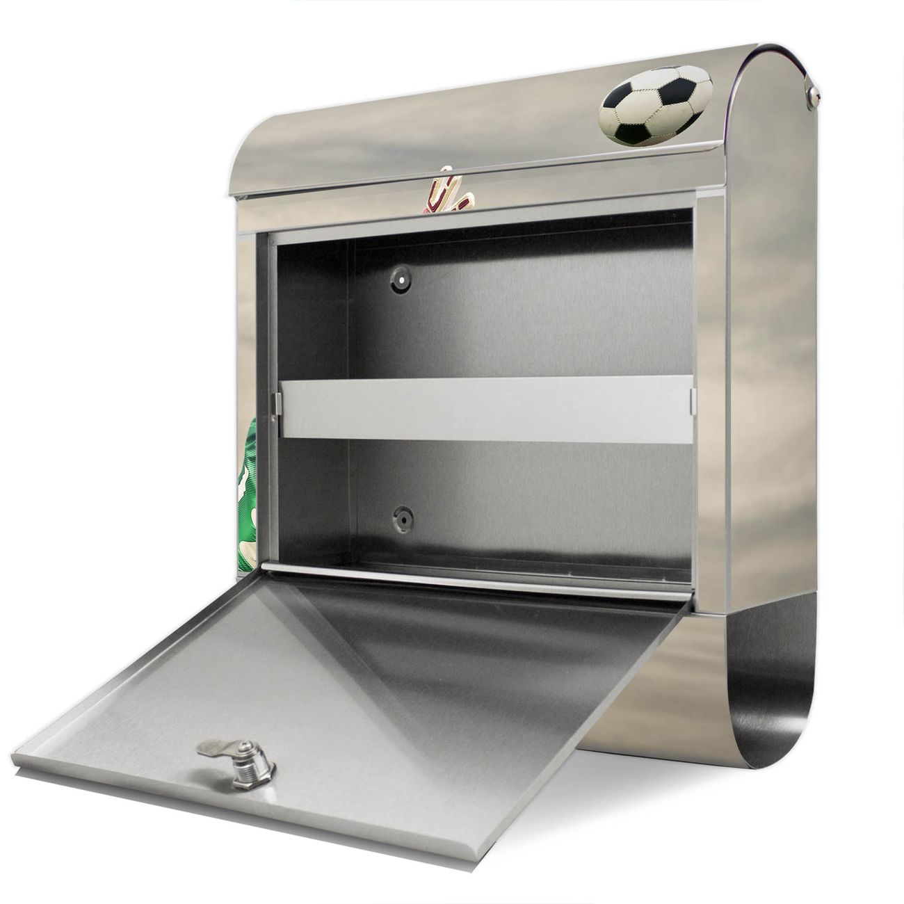 FUNKTION: Der banjado Edelstahl Briefkasten mit Motiv Motiv Abgewehrt bietet Ihnen mit seinem Fassungsvermögen genügend Platz auch für große A4 Sendungen. Das integrierte Zeitungsfach eignet sich hervorragend um unkompliziert die Tageszeitung zu fassen. Auf Wunsch können Sie bei uns den passenden Ständer kaufen und so aus dem Wandbriefkasten einen Standbriefkasten machen. DESIGN: Der Motivbriefkasten hat ein sehr ansprechendes und ausgefallenes Design, damit entlocken Sie Ihren Nachbarn und dem Postboten ein Lächeln. Heben Sie Sich ab von der tristen grauen Masse ohne auf Funktionalität zu verzichten. DETAILS: Der Design Briefkasten mit Motiv Motiv Abgewehrt besteht aus hochwertigem 18/0 Edelstahl. Das Motiv besteht aus einer wetter- und UV-resistenten Folie, die mit einem Schutzlaminat überzogen ist. Der Briefkasten wird mit Montagematerial und zwei Schlüsseln geliefert. NUTZEN: Sie können diesen Briefkasten sowohl als Wandbriefkasten montieren oder einen passenden Ständer auswählen und als Standbriefkasten einbetonieren. Die Größe bietet genügend Platz für Sendungen aller Art, das hochwertige Edelstahl ist rostfrei und die Motivfolie absolut wetterfest. SCHUTZ: Um Ihre Post optimal vor Witterungseinflüssen wie Starkregen zu schützen, empfehlen wir, den Briefkasten geschützt anzubringen. BANJADO: Ihr Briefkasten wird in Sachsen in einer kleinen Manufaktur von Hand veredelt. Die Motivfolie ist lösungsmittelfrei und schutzlaminiert, dies sorgt für einen langen Halt. Wir legen großen Wert auf die Verbindung von Funktionalität und Design. Sie erhalten Handarbeit aus Sachsen.