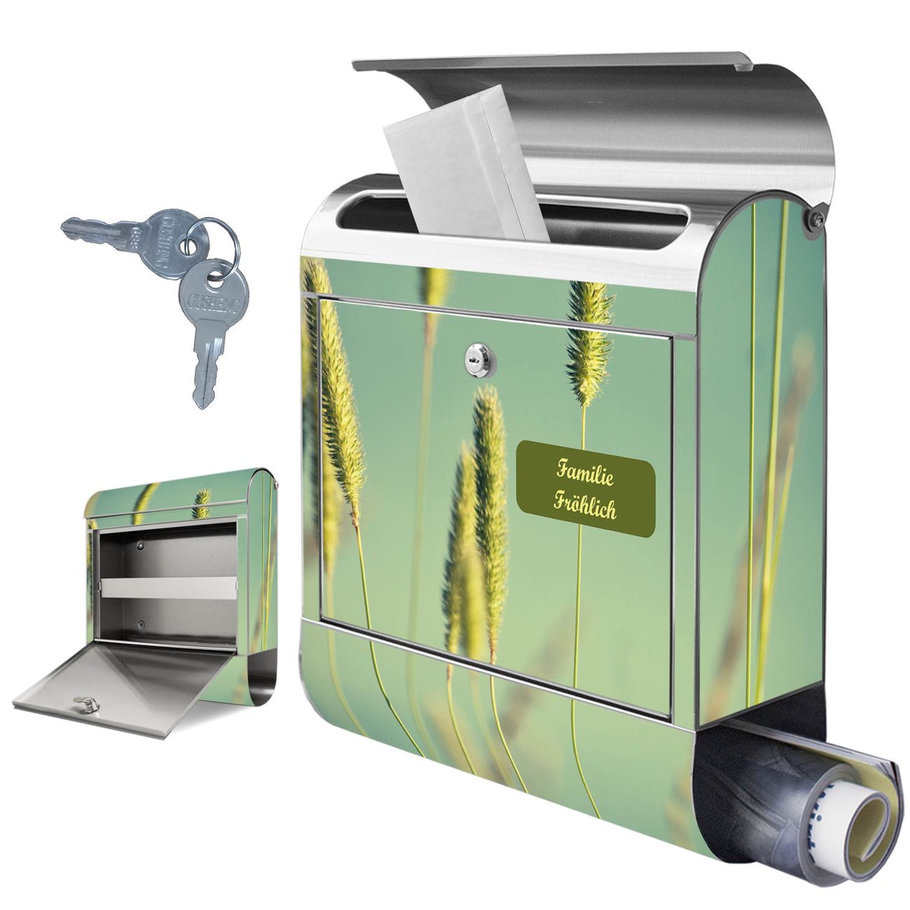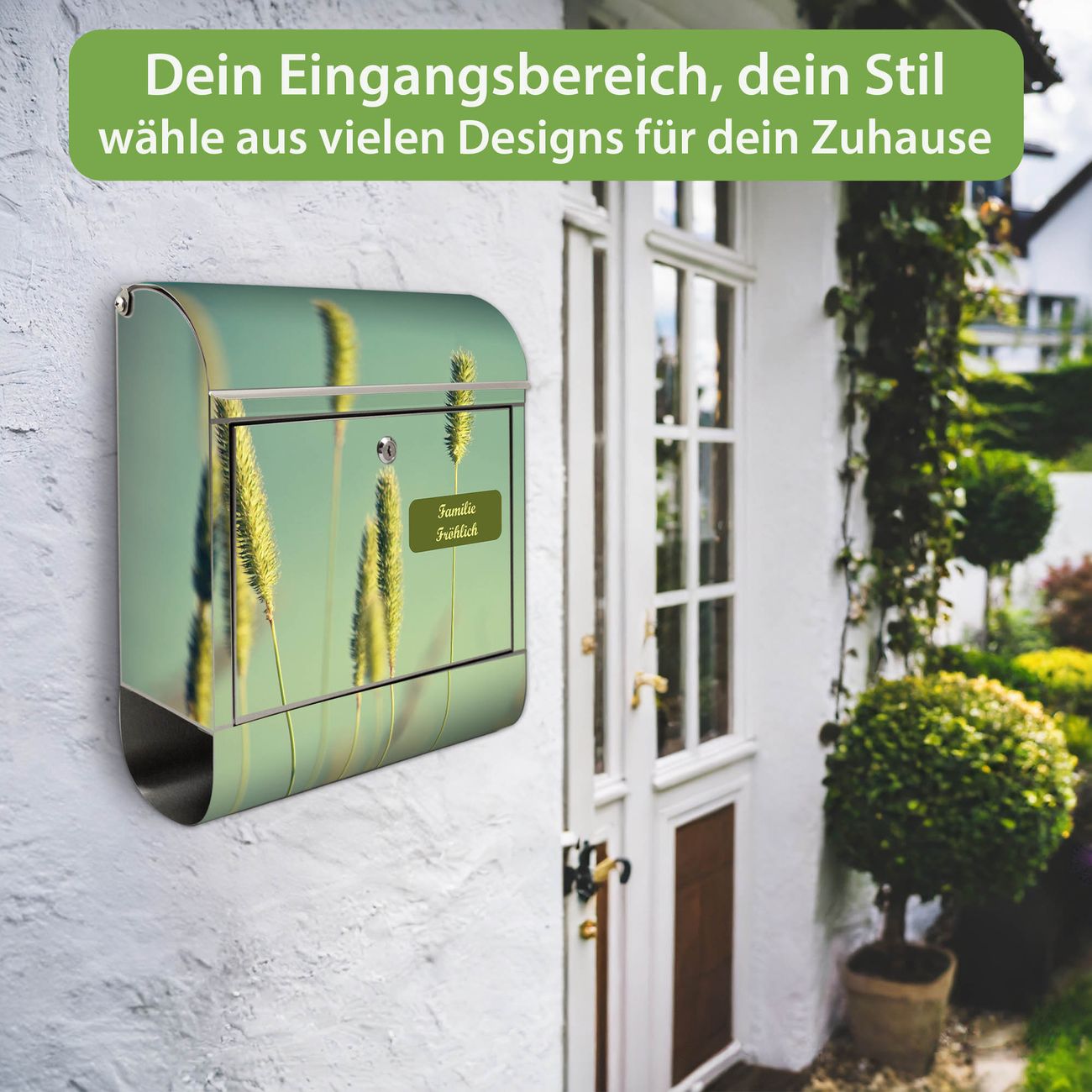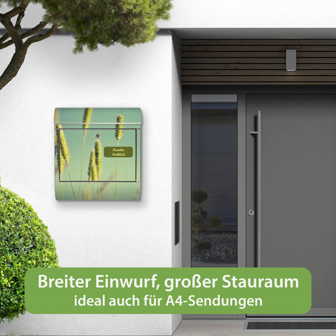 Wandbriefkasten Edelstahl Motiv Ähren