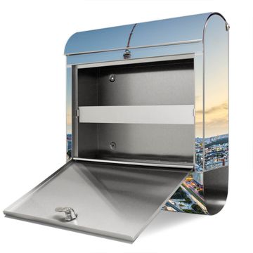 FUNKTION: Der banjado Edelstahl Briefkasten mit Motiv Motiv Alexanderplatz bietet Ihnen mit seinem Fassungsvermögen genügend Platz auch für große A4 Sendungen. Das integrierte Zeitungsfach eignet sich hervorragend um unkompliziert die Tageszeitung zu fassen. Auf Wunsch können Sie bei uns den passenden Ständer kaufen und so aus dem Wandbriefkasten einen Standbriefkasten machen. DESIGN: Der Motivbriefkasten hat ein sehr ansprechendes und ausgefallenes Design, damit entlocken Sie Ihren Nachbarn und dem Postboten ein Lächeln. Heben Sie Sich ab von der tristen grauen Masse ohne auf Funktionalität zu verzichten. DETAILS: Der Design Briefkasten mit Motiv Motiv Alexanderplatz besteht aus hochwertigem 18/0 Edelstahl. Das Motiv besteht aus einer wetter- und UV-resistenten Folie, die mit einem Schutzlaminat überzogen ist. Der Briefkasten wird mit Montagematerial und zwei Schlüsseln geliefert. NUTZEN: Sie können diesen Briefkasten sowohl als Wandbriefkasten montieren oder einen passenden Ständer auswählen und als Standbriefkasten einbetonieren. Die Größe bietet genügend Platz für Sendungen aller Art, das hochwertige Edelstahl ist rostfrei und die Motivfolie absolut wetterfest. SCHUTZ: Um Ihre Post optimal vor Witterungseinflüssen wie Starkregen zu schützen, empfehlen wir, den Briefkasten geschützt anzubringen. BANJADO: Ihr Briefkasten wird in Sachsen in einer kleinen Manufaktur von Hand veredelt. Die Motivfolie ist lösungsmittelfrei und schutzlaminiert, dies sorgt für einen langen Halt. Wir legen großen Wert auf die Verbindung von Funktionalität und Design. Sie erhalten Handarbeit aus Sachsen.