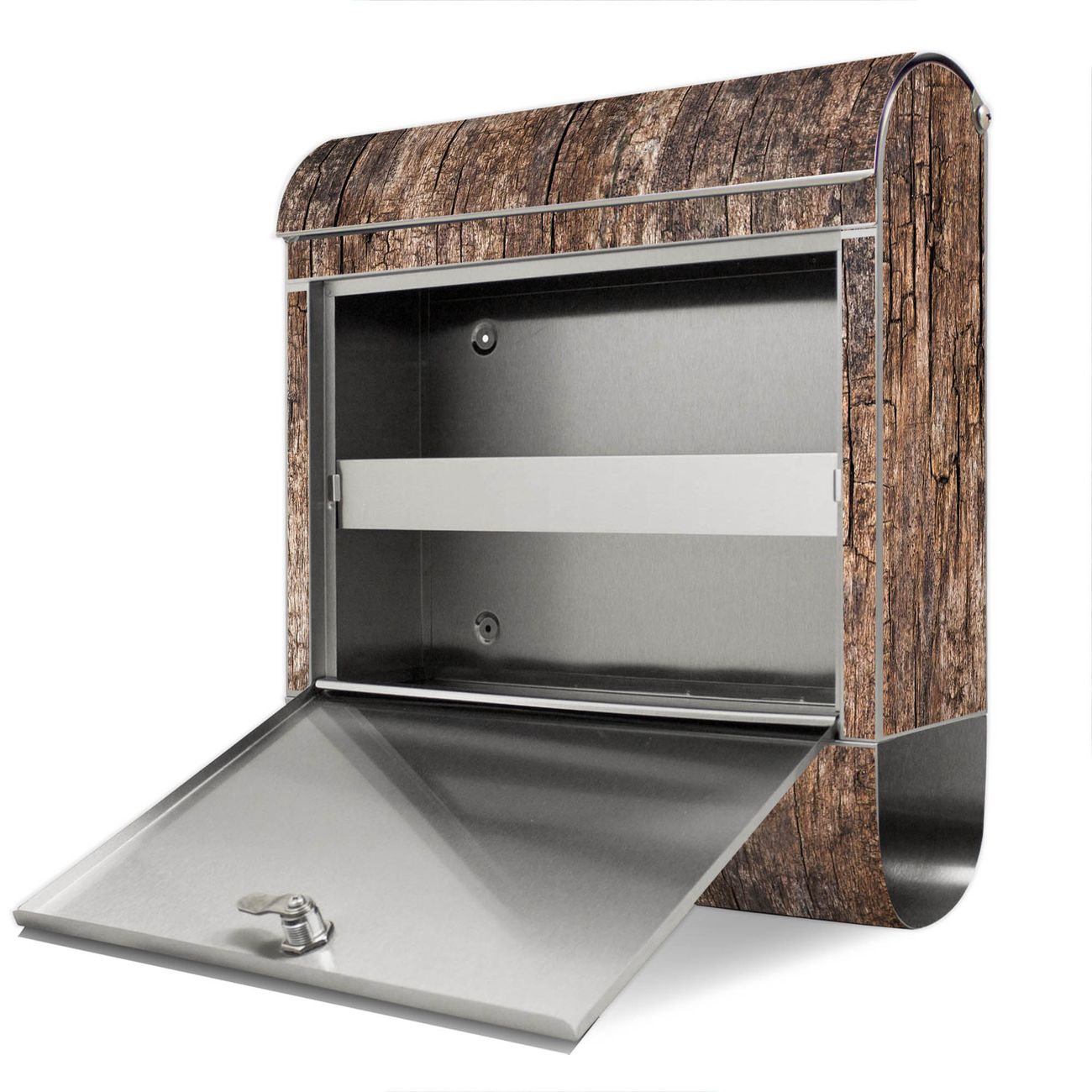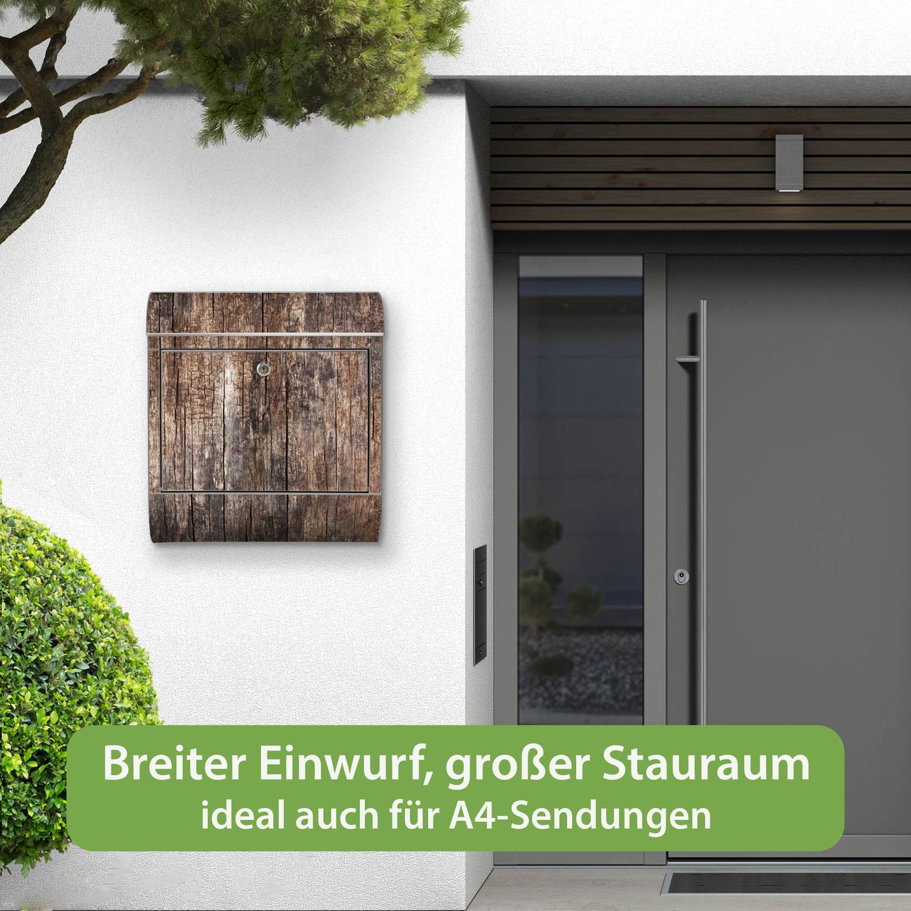Wandbriefkasten Edelstahl Motiv Altes Holz