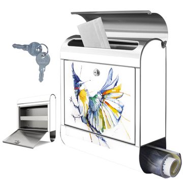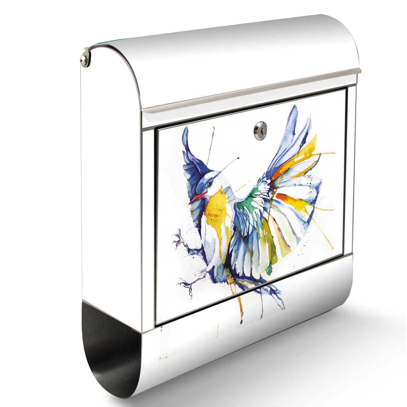 Wandbriefkasten Edelstahl Motiv Aquarell Vogel