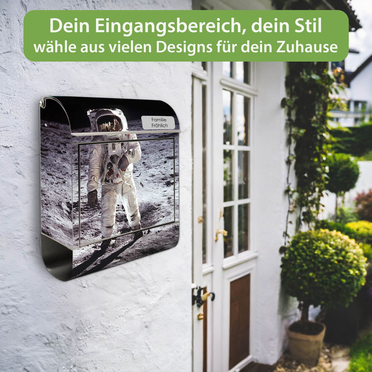 Wandbriefkasten Edelstahl Motiv Astronaut