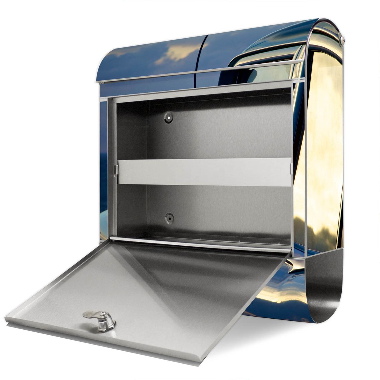 FUNKTION: Der banjado Edelstahl Briefkasten mit Motiv Motiv Auto am Strand bietet Ihnen mit seinem Fassungsvermögen genügend Platz auch für große A4 Sendungen. Das integrierte Zeitungsfach eignet sich hervorragend um unkompliziert die Tageszeitung zu fassen. Auf Wunsch können Sie bei uns den passenden Ständer kaufen und so aus dem Wandbriefkasten einen Standbriefkasten machen. DESIGN: Der Motivbriefkasten hat ein sehr ansprechendes und ausgefallenes Design, damit entlocken Sie Ihren Nachbarn und dem Postboten ein Lächeln. Heben Sie Sich ab von der tristen grauen Masse ohne auf Funktionalität zu verzichten. DETAILS: Der Design Briefkasten mit Motiv Motiv Auto am Strand besteht aus hochwertigem 18/0 Edelstahl. Das Motiv besteht aus einer wetter- und UV-resistenten Folie, die mit einem Schutzlaminat überzogen ist. Der Briefkasten wird mit Montagematerial und zwei Schlüsseln geliefert. NUTZEN: Sie können diesen Briefkasten sowohl als Wandbriefkasten montieren oder einen passenden Ständer auswählen und als Standbriefkasten einbetonieren. Die Größe bietet genügend Platz für Sendungen aller Art, das hochwertige Edelstahl ist rostfrei und die Motivfolie absolut wetterfest. SCHUTZ: Um Ihre Post optimal vor Witterungseinflüssen wie Starkregen zu schützen, empfehlen wir, den Briefkasten geschützt anzubringen. BANJADO: Ihr Briefkasten wird in Sachsen in einer kleinen Manufaktur von Hand veredelt. Die Motivfolie ist lösungsmittelfrei und schutzlaminiert, dies sorgt für einen langen Halt. Wir legen großen Wert auf die Verbindung von Funktionalität und Design. Sie erhalten Handarbeit aus Sachsen.