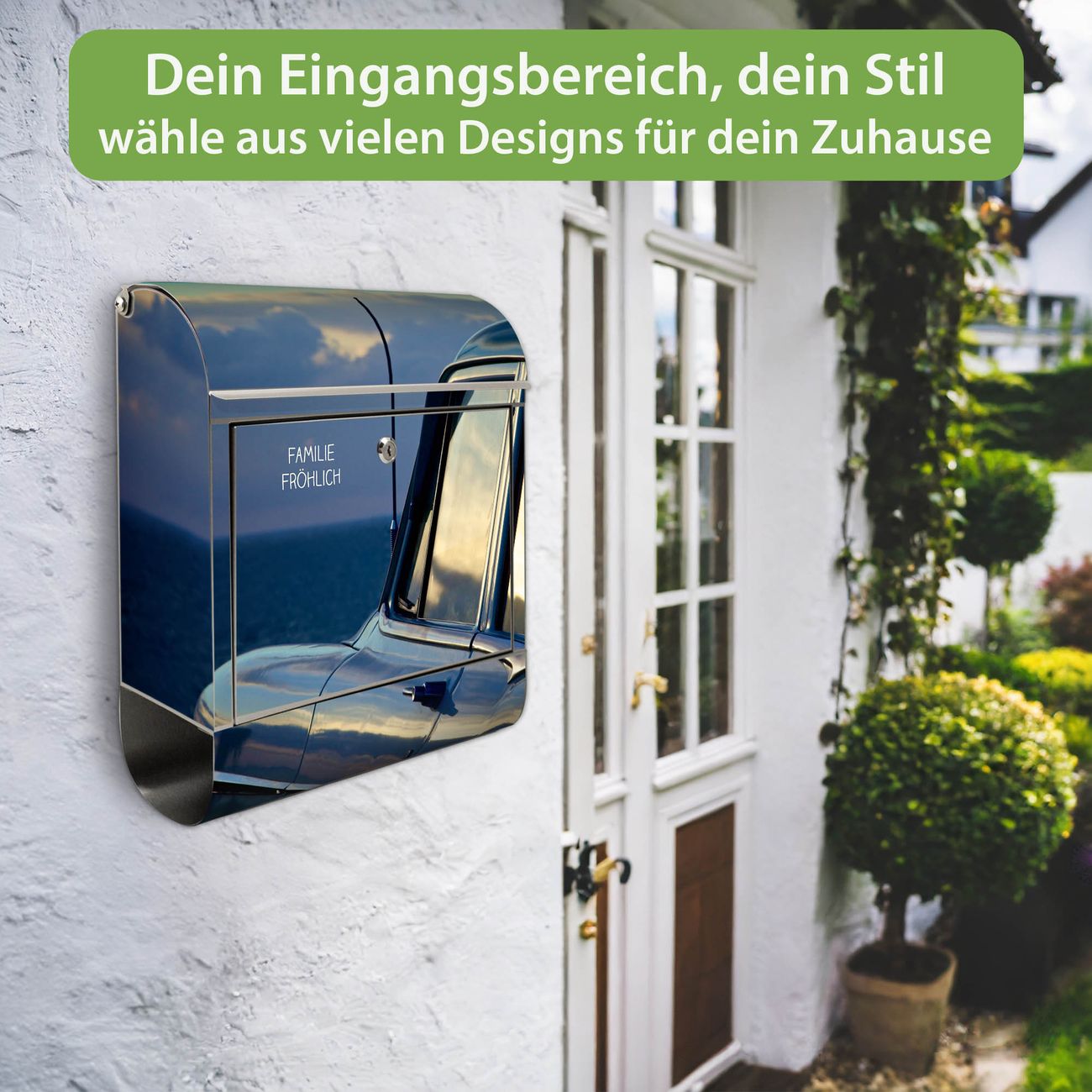 Wandbriefkasten Edelstahl Motiv Auto am Strand