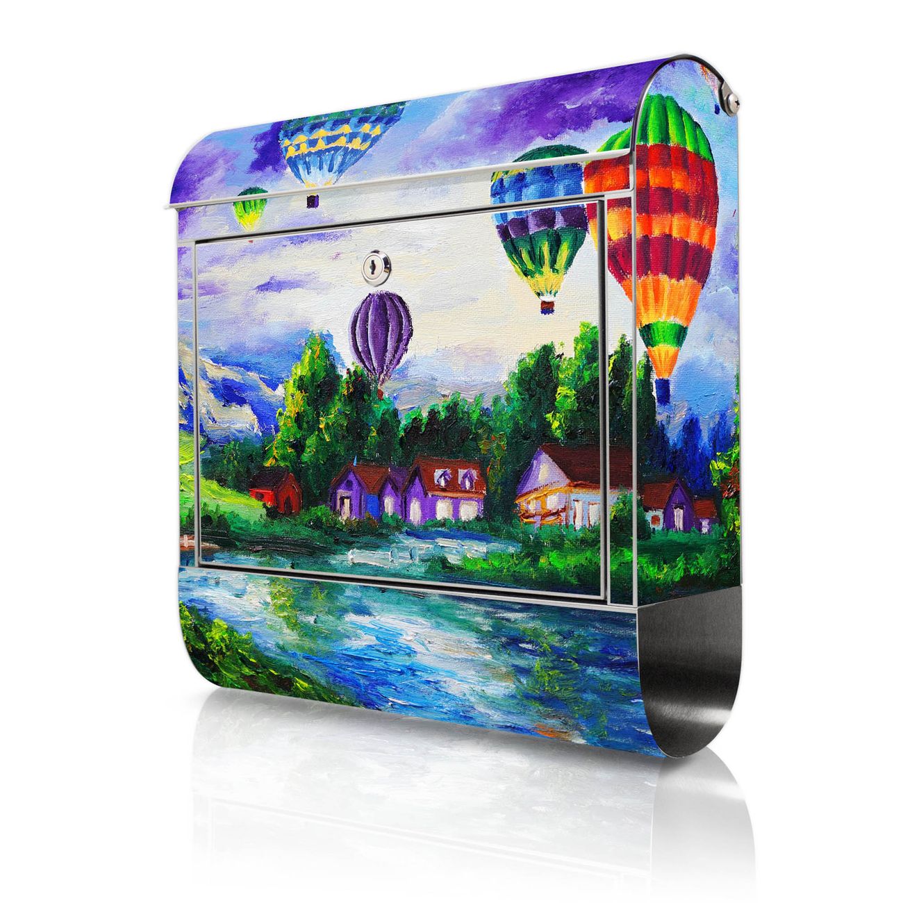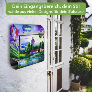 Wandbriefkasten Edelstahl Motiv Ballons In Lila Wolken