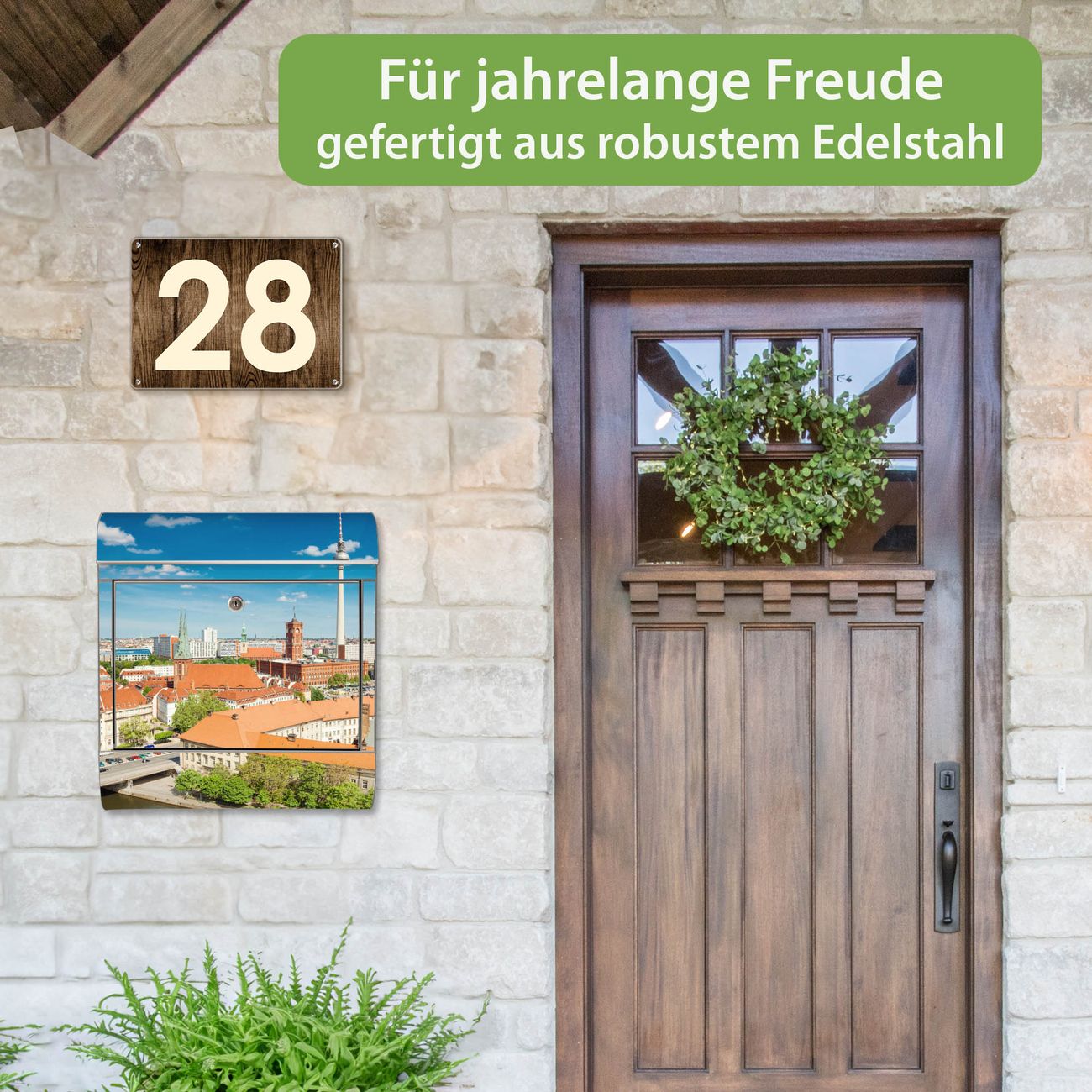 Wandbriefkasten Edelstahl Motiv Berlin Mitte
