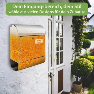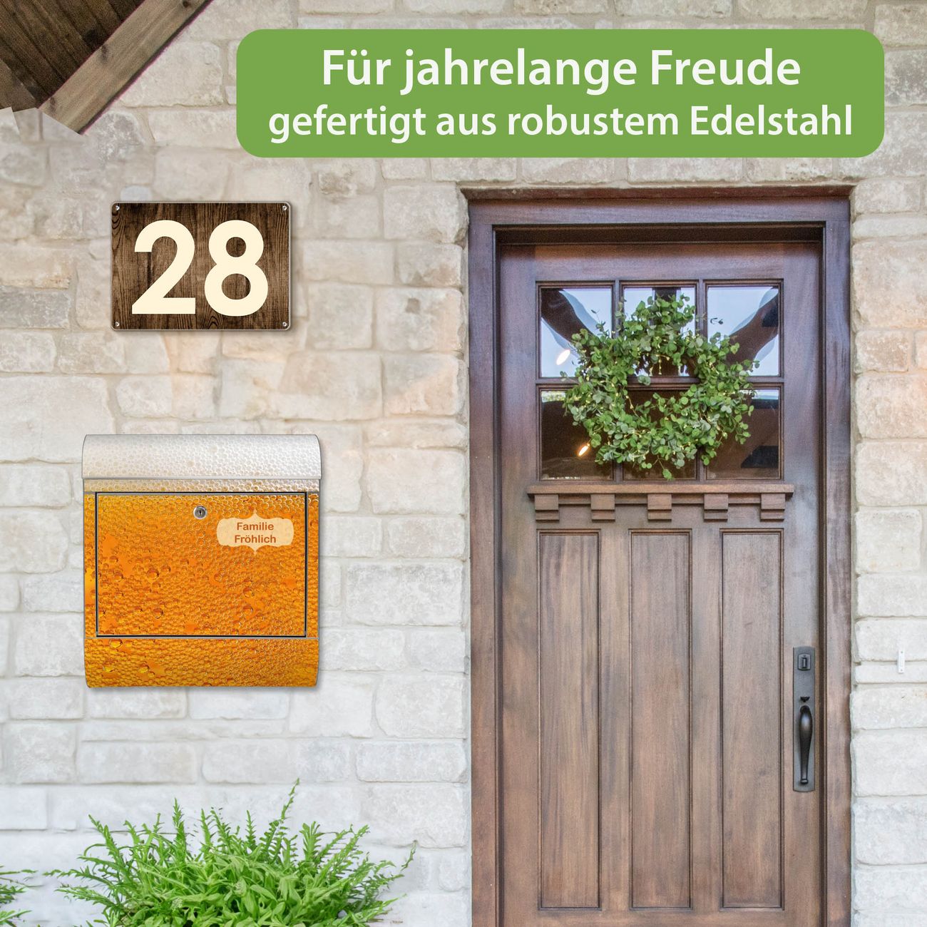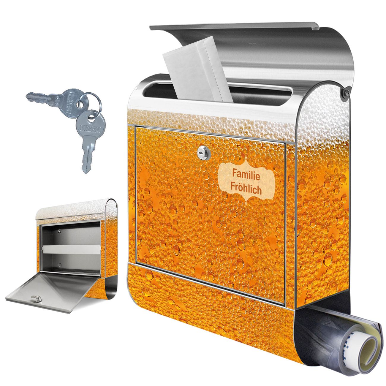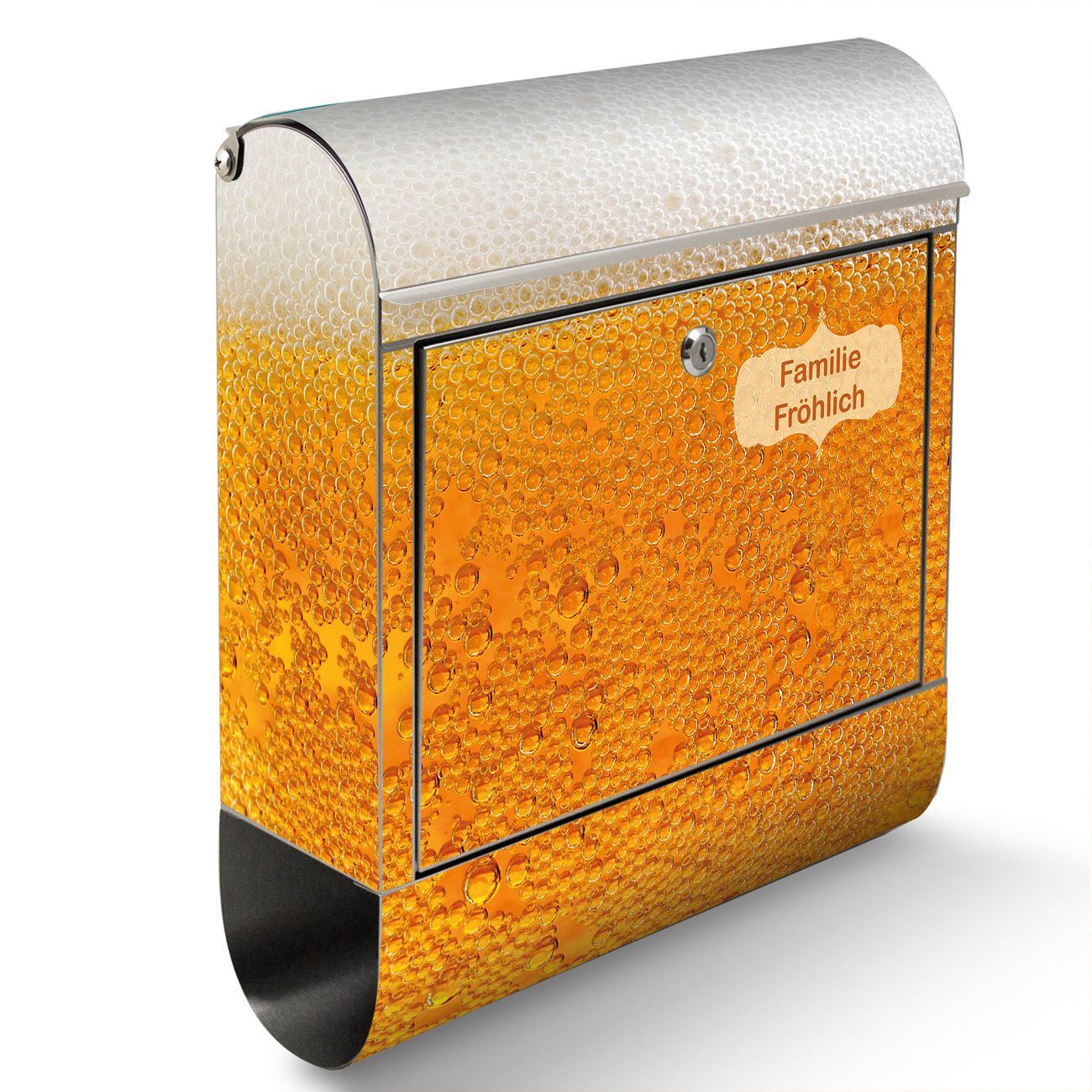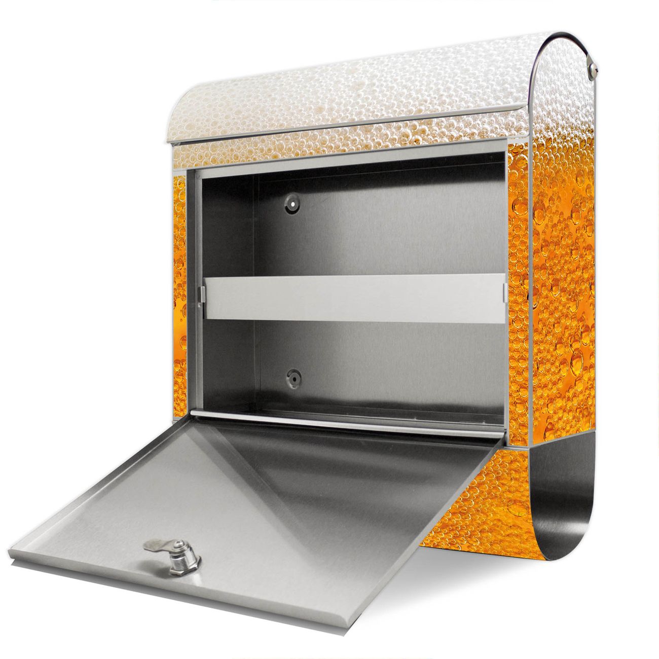 FUNKTION: Der banjado Edelstahl Briefkasten mit Motiv Motiv Bier bietet Ihnen mit seinem Fassungsvermögen genügend Platz auch für große A4 Sendungen. Das integrierte Zeitungsfach eignet sich hervorragend um unkompliziert die Tageszeitung zu fassen. Auf Wunsch können Sie bei uns den passenden Ständer kaufen und so aus dem Wandbriefkasten einen Standbriefkasten machen. DESIGN: Der Motivbriefkasten hat ein sehr ansprechendes und ausgefallenes Design, damit entlocken Sie Ihren Nachbarn und dem Postboten ein Lächeln. Heben Sie Sich ab von der tristen grauen Masse ohne auf Funktionalität zu verzichten. DETAILS: Der Design Briefkasten mit Motiv Motiv Bier besteht aus hochwertigem 18/0 Edelstahl. Das Motiv besteht aus einer wetter- und UV-resistenten Folie, die mit einem Schutzlaminat überzogen ist. Der Briefkasten wird mit Montagematerial und zwei Schlüsseln geliefert. NUTZEN: Sie können diesen Briefkasten sowohl als Wandbriefkasten montieren oder einen passenden Ständer auswählen und als Standbriefkasten einbetonieren. Die Größe bietet genügend Platz für Sendungen aller Art, das hochwertige Edelstahl ist rostfrei und die Motivfolie absolut wetterfest. SCHUTZ: Um Ihre Post optimal vor Witterungseinflüssen wie Starkregen zu schützen, empfehlen wir, den Briefkasten geschützt anzubringen. BANJADO: Ihr Briefkasten wird in Sachsen in einer kleinen Manufaktur von Hand veredelt. Die Motivfolie ist lösungsmittelfrei und schutzlaminiert, dies sorgt für einen langen Halt. Wir legen großen Wert auf die Verbindung von Funktionalität und Design. Sie erhalten Handarbeit aus Sachsen.