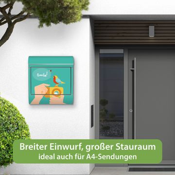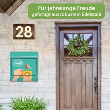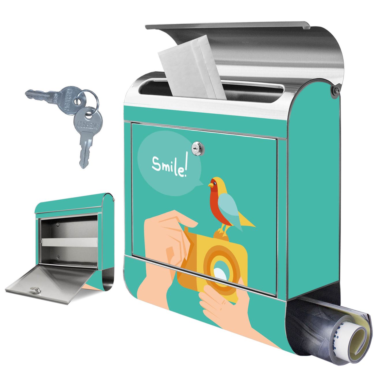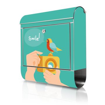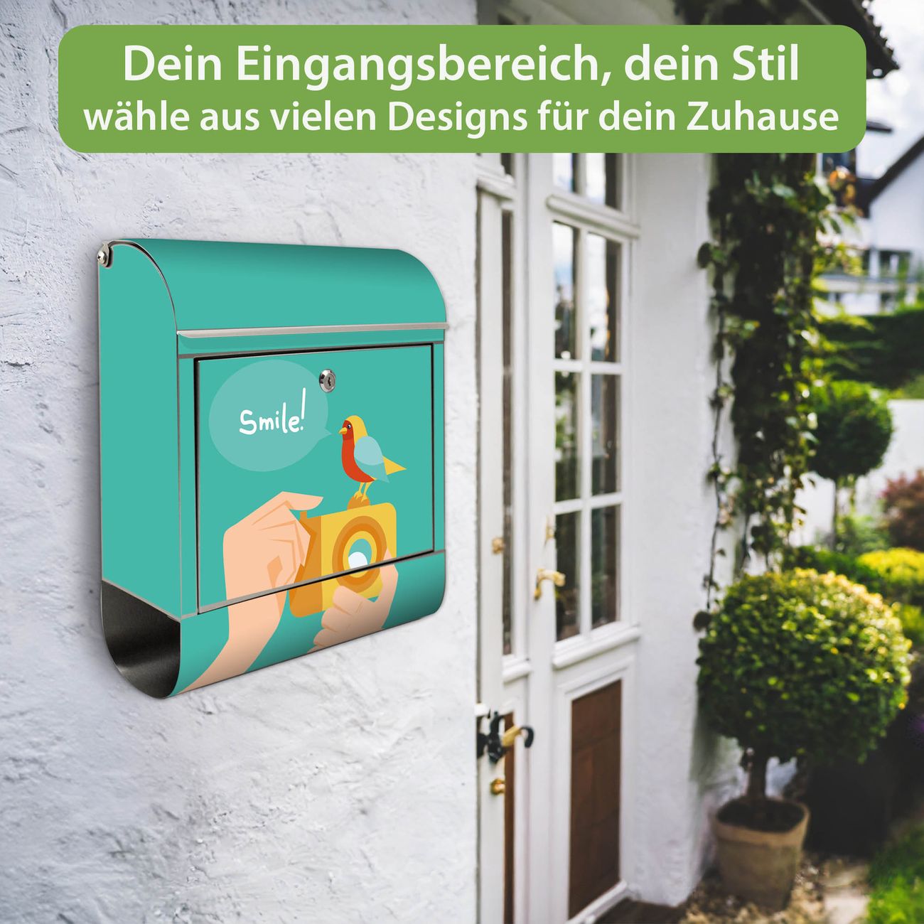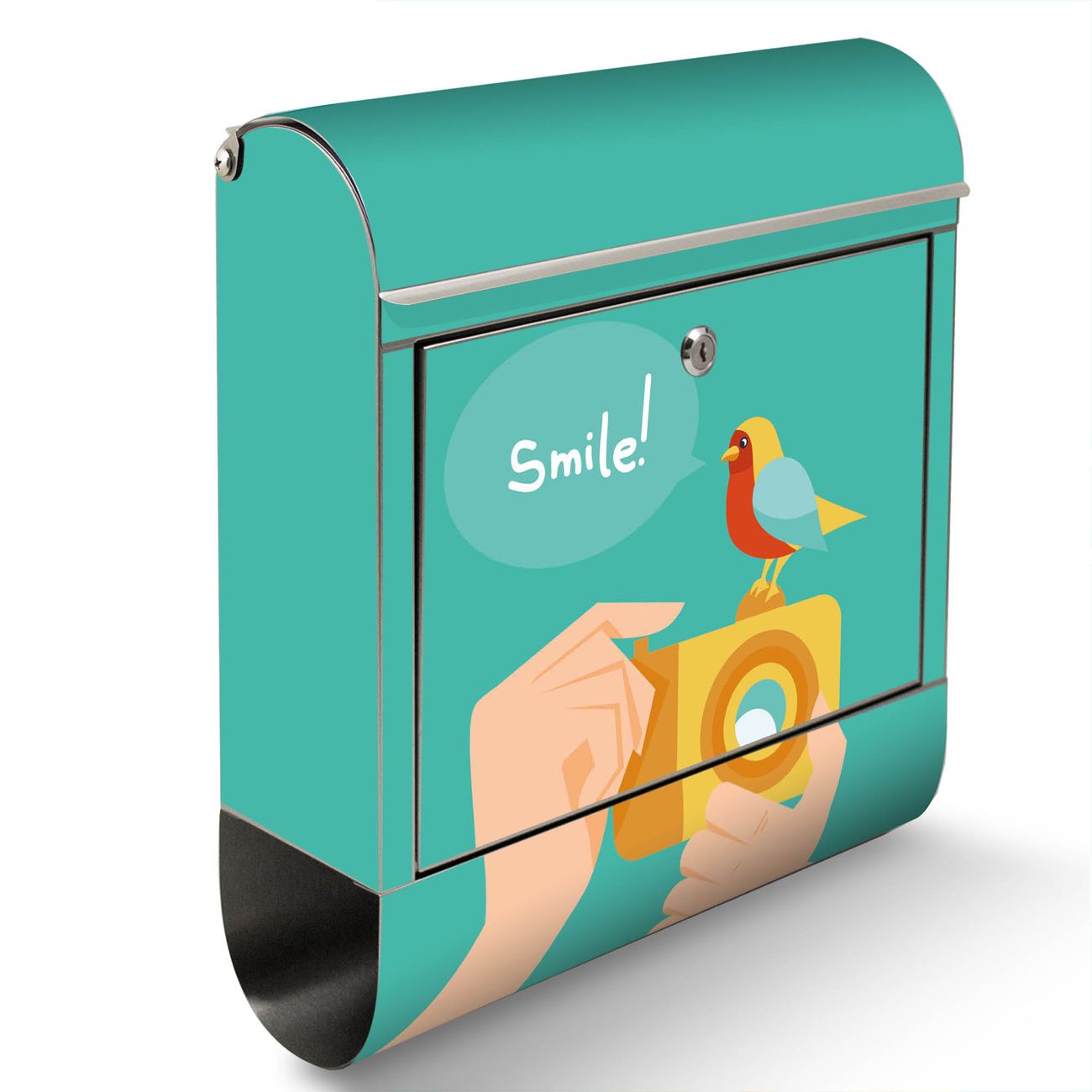 Wandbriefkasten Edelstahl Motiv Bitte Lächeln 2