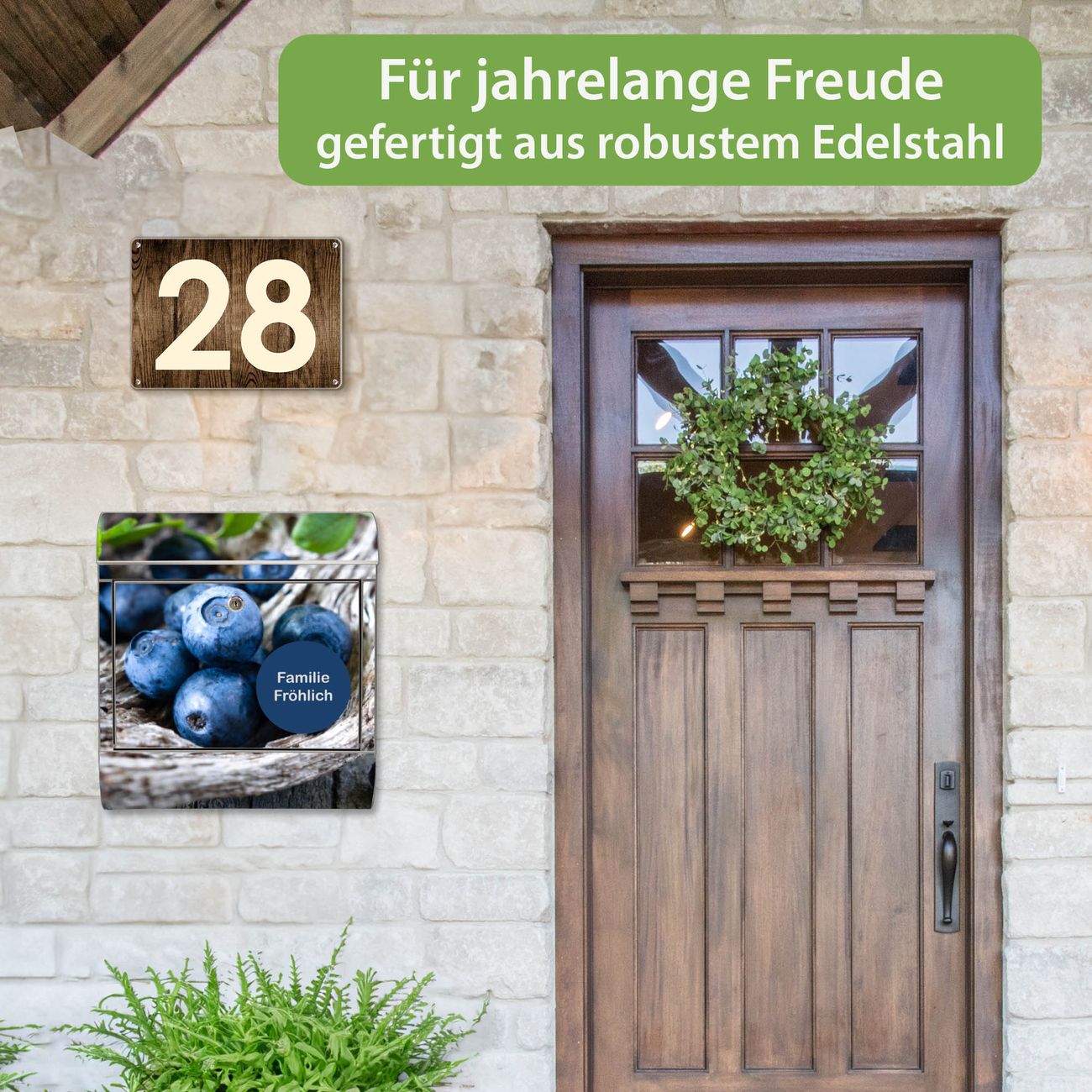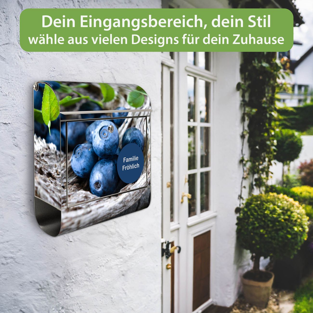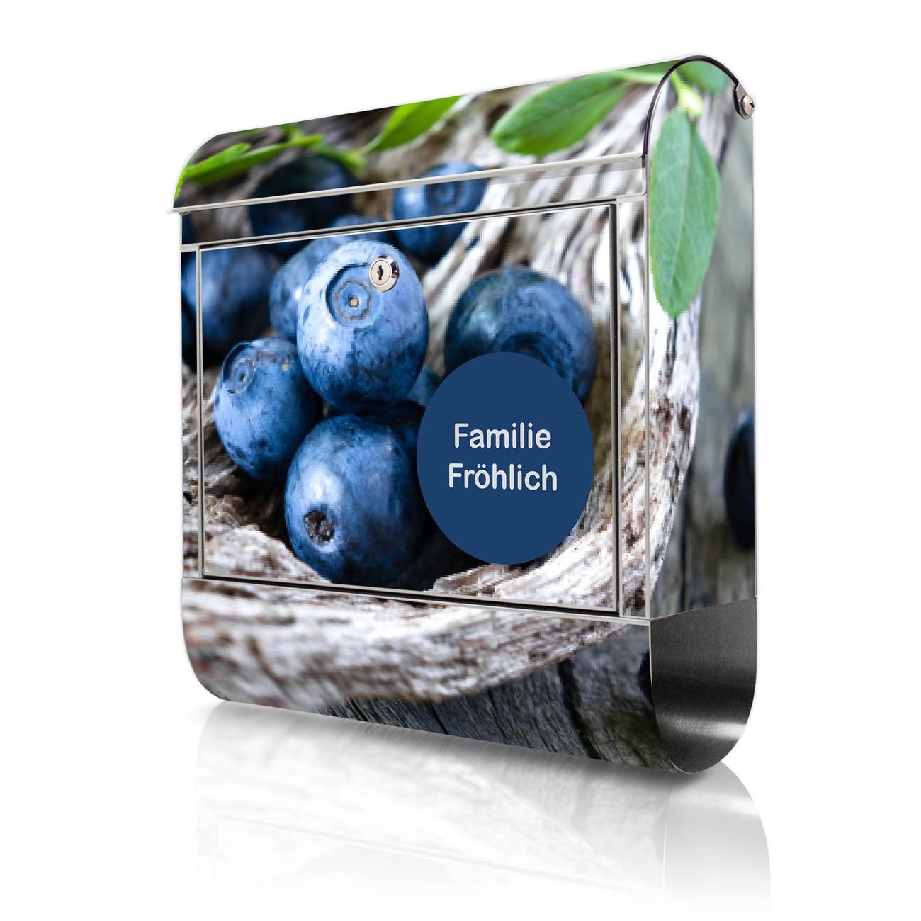Wandbriefkasten Edelstahl Motiv Blaubeeren