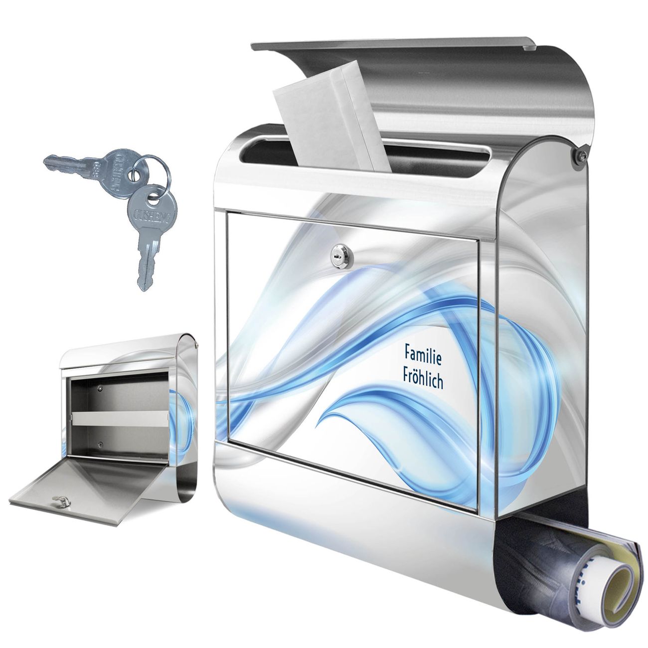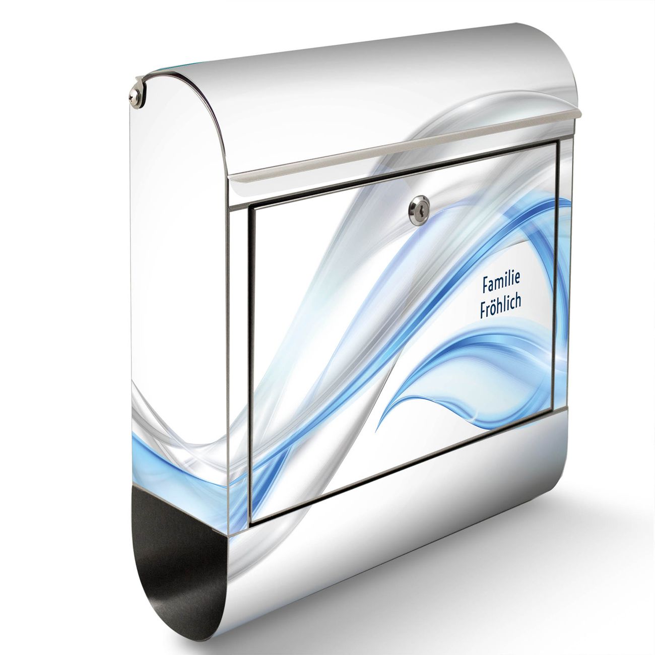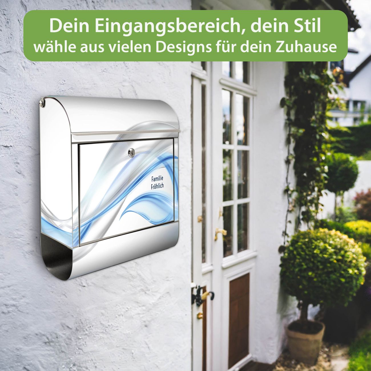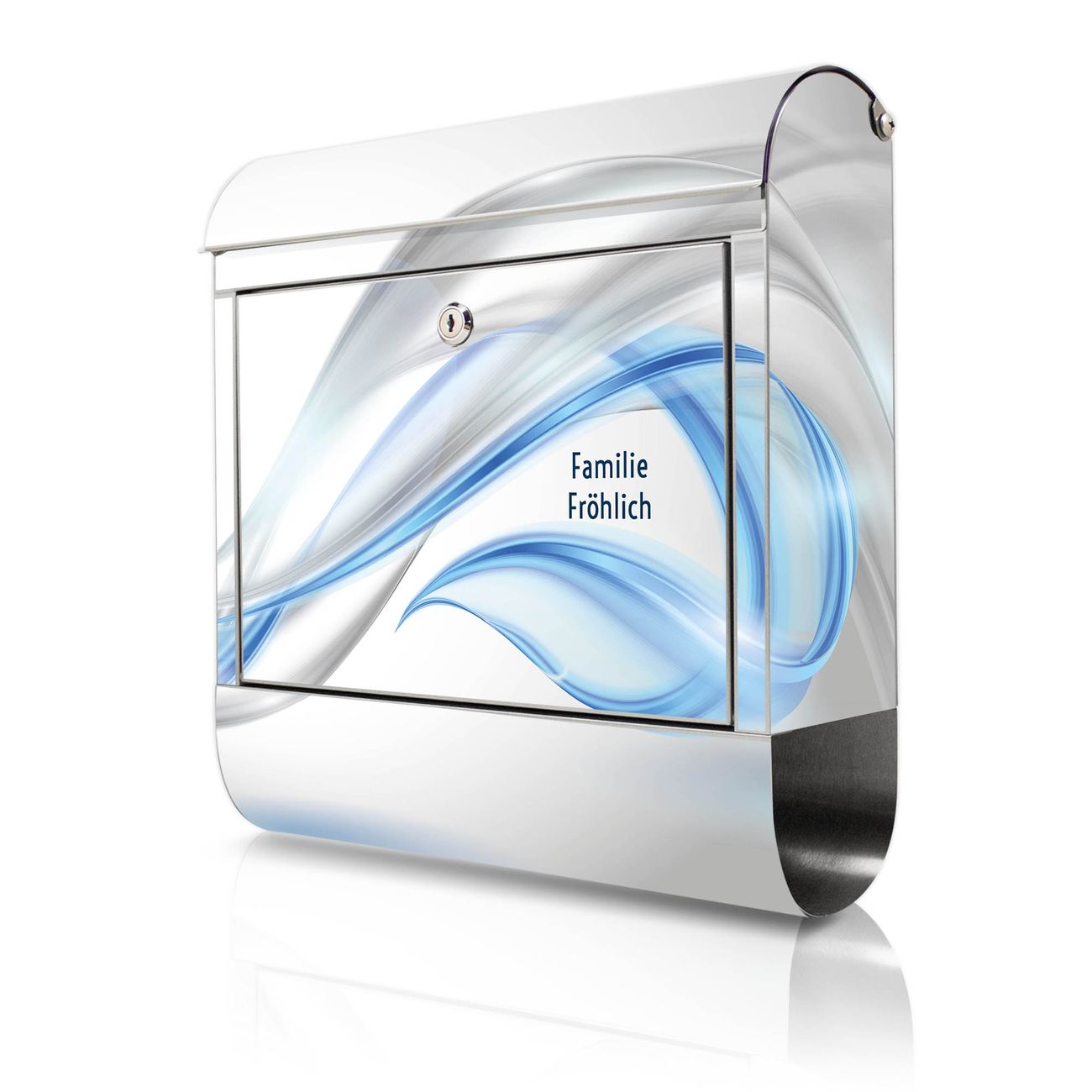 Wandbriefkasten Edelstahl Motiv Blauer Schleier