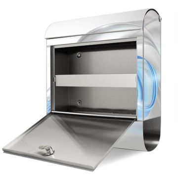 FUNKTION: Der banjado Edelstahl Briefkasten mit Motiv Motiv Blauer Schleier bietet Ihnen mit seinem Fassungsvermögen genügend Platz auch für große A4 Sendungen. Das integrierte Zeitungsfach eignet sich hervorragend um unkompliziert die Tageszeitung zu fassen. Auf Wunsch können Sie bei uns den passenden Ständer kaufen und so aus dem Wandbriefkasten einen Standbriefkasten machen. DESIGN: Der Motivbriefkasten hat ein sehr ansprechendes und ausgefallenes Design, damit entlocken Sie Ihren Nachbarn und dem Postboten ein Lächeln. Heben Sie Sich ab von der tristen grauen Masse ohne auf Funktionalität zu verzichten. DETAILS: Der Design Briefkasten mit Motiv Motiv Blauer Schleier besteht aus hochwertigem 18/0 Edelstahl. Das Motiv besteht aus einer wetter- und UV-resistenten Folie, die mit einem Schutzlaminat überzogen ist. Der Briefkasten wird mit Montagematerial und zwei Schlüsseln geliefert. NUTZEN: Sie können diesen Briefkasten sowohl als Wandbriefkasten montieren oder einen passenden Ständer auswählen und als Standbriefkasten einbetonieren. Die Größe bietet genügend Platz für Sendungen aller Art, das hochwertige Edelstahl ist rostfrei und die Motivfolie absolut wetterfest. SCHUTZ: Um Ihre Post optimal vor Witterungseinflüssen wie Starkregen zu schützen, empfehlen wir, den Briefkasten geschützt anzubringen. BANJADO: Ihr Briefkasten wird in Sachsen in einer kleinen Manufaktur von Hand veredelt. Die Motivfolie ist lösungsmittelfrei und schutzlaminiert, dies sorgt für einen langen Halt. Wir legen großen Wert auf die Verbindung von Funktionalität und Design. Sie erhalten Handarbeit aus Sachsen.