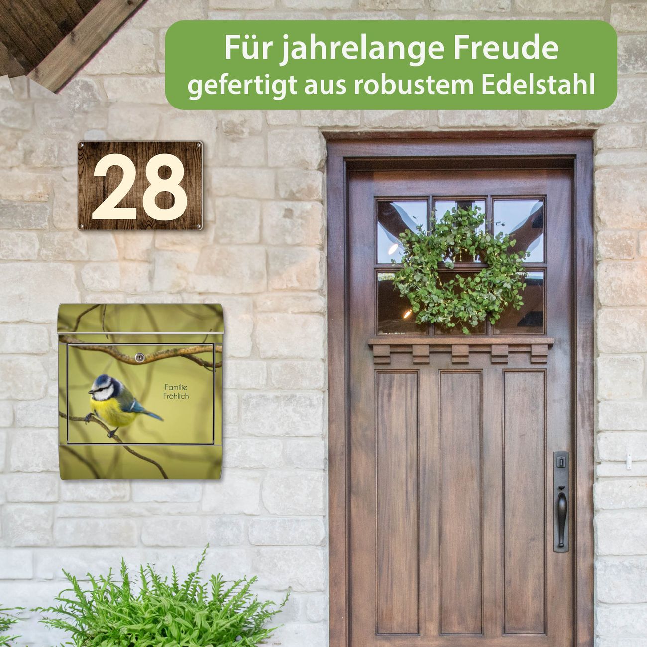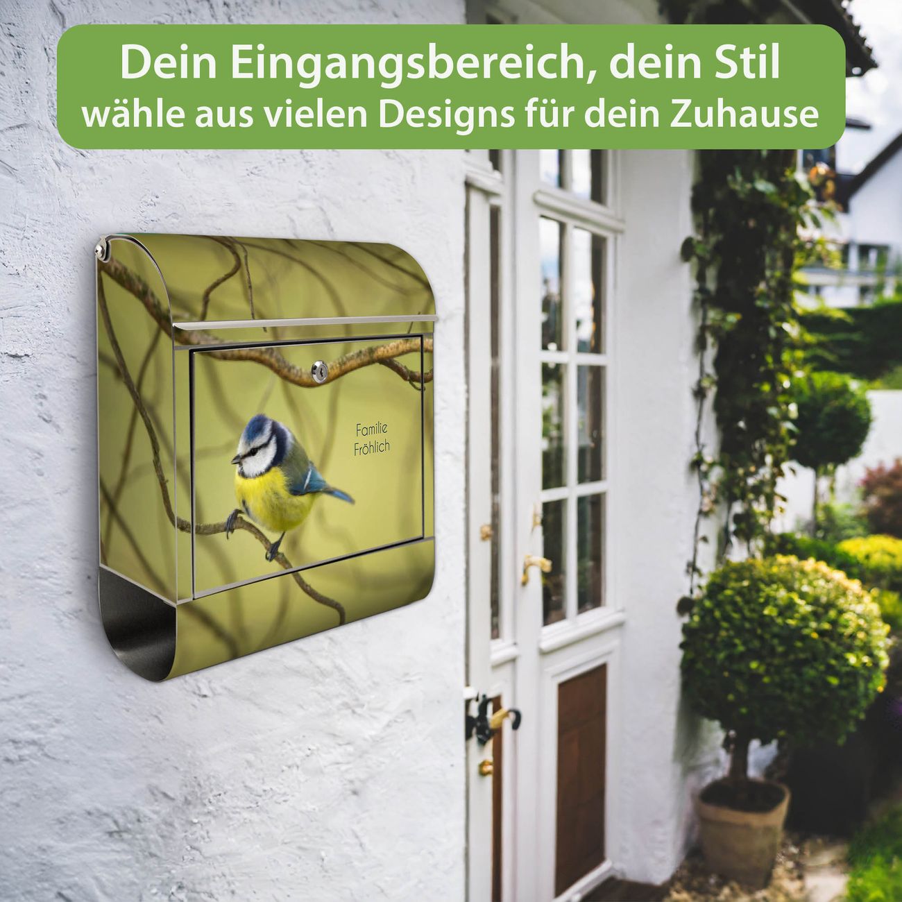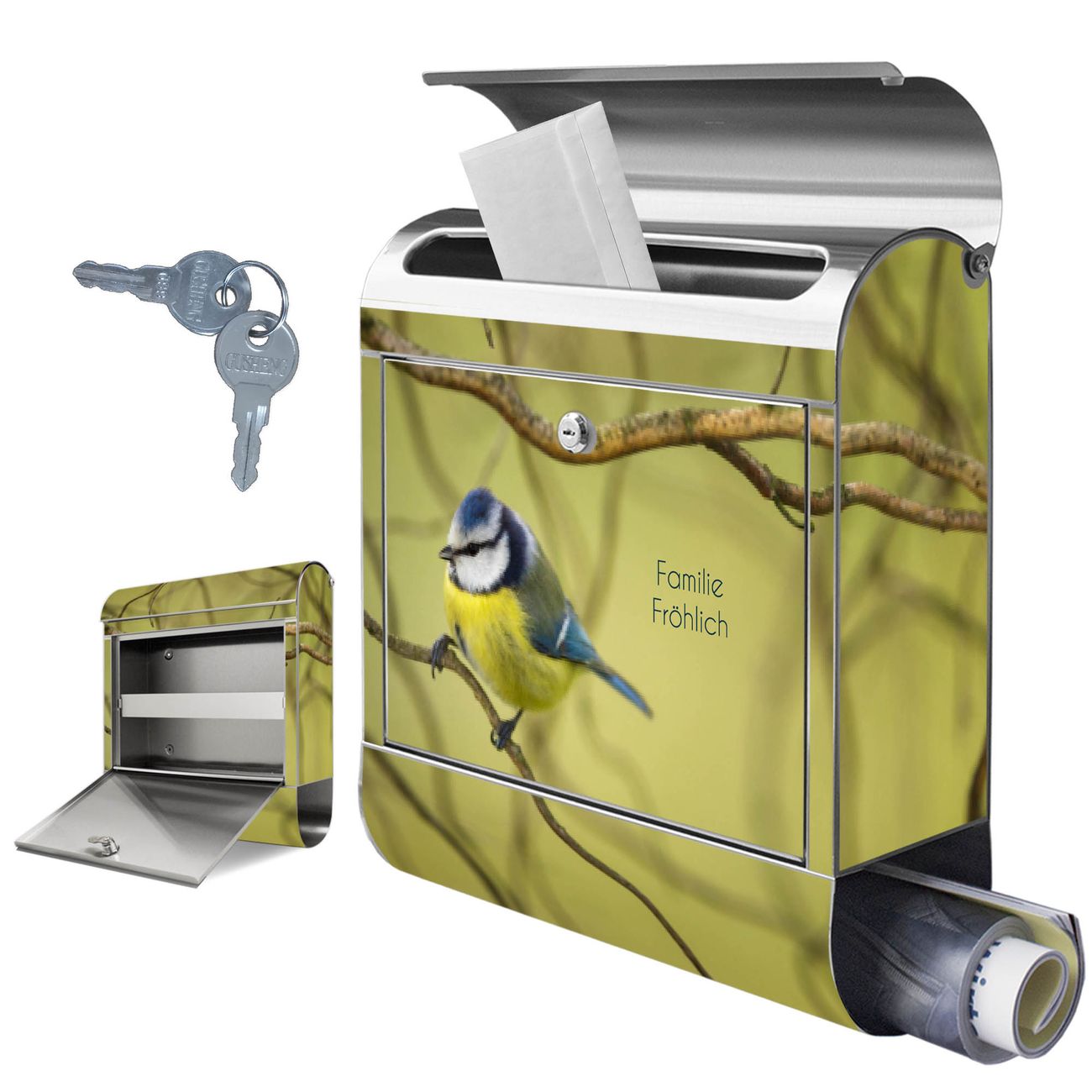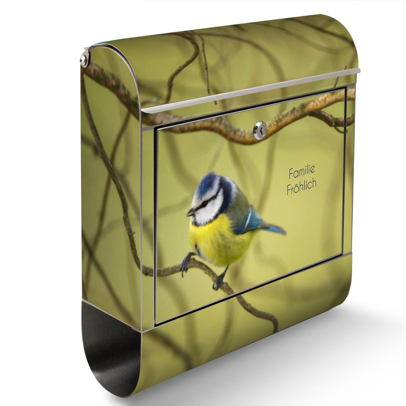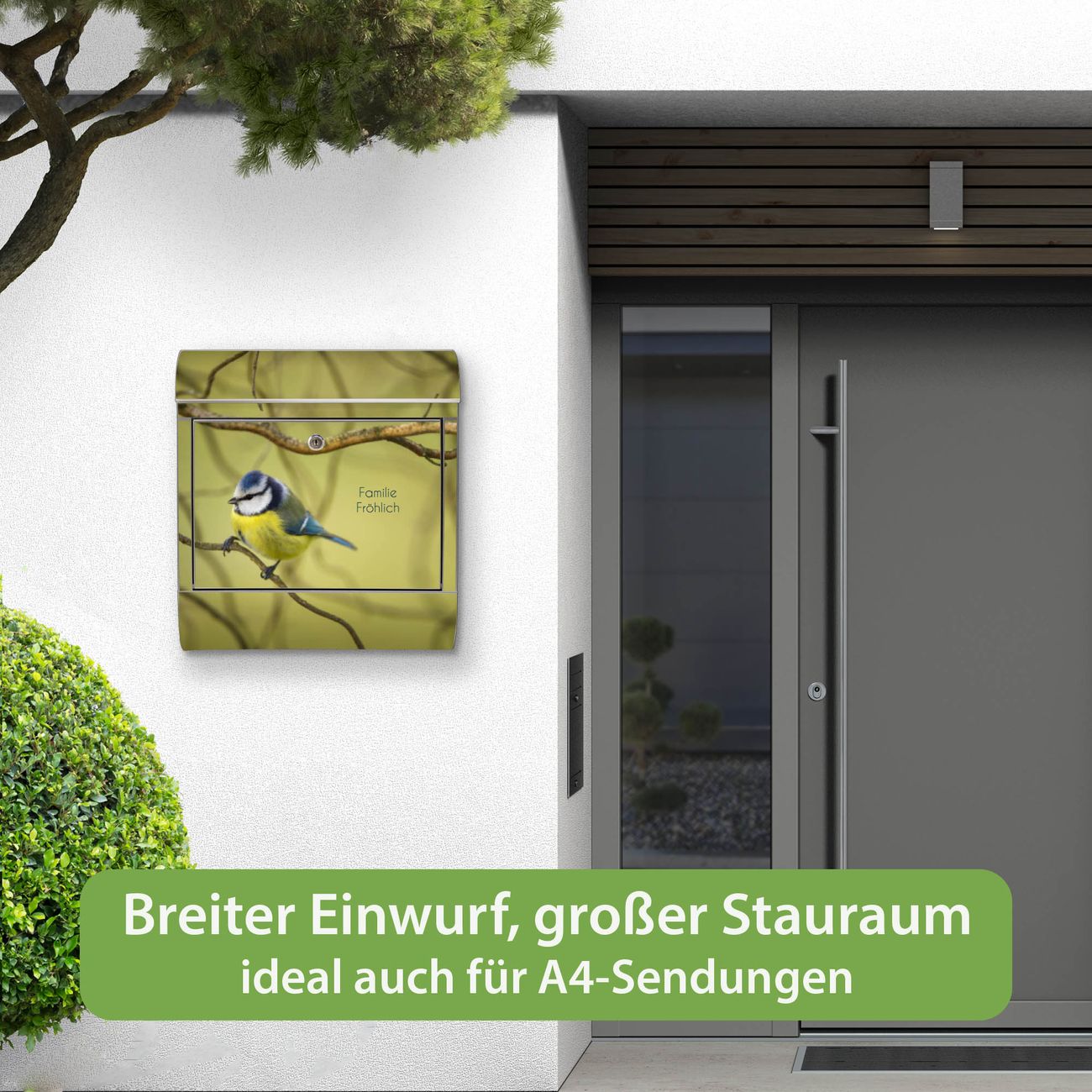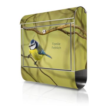 Wandbriefkasten Edelstahl Motiv Blaumeise im Baum