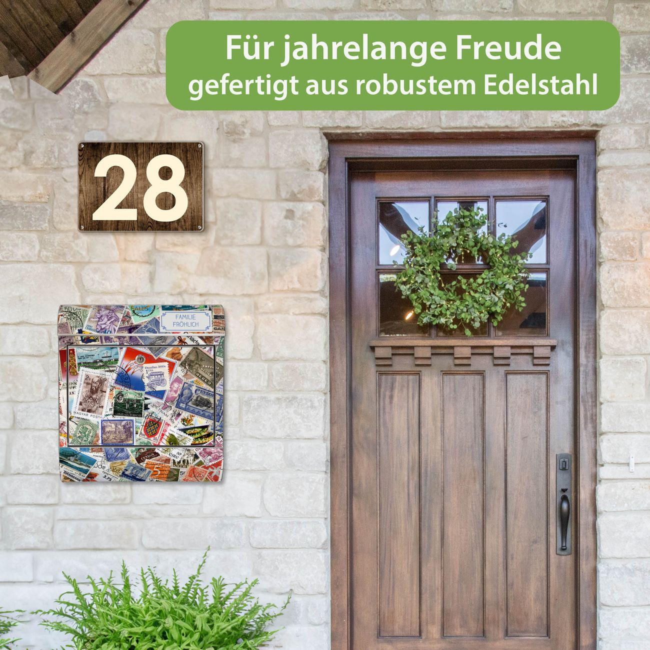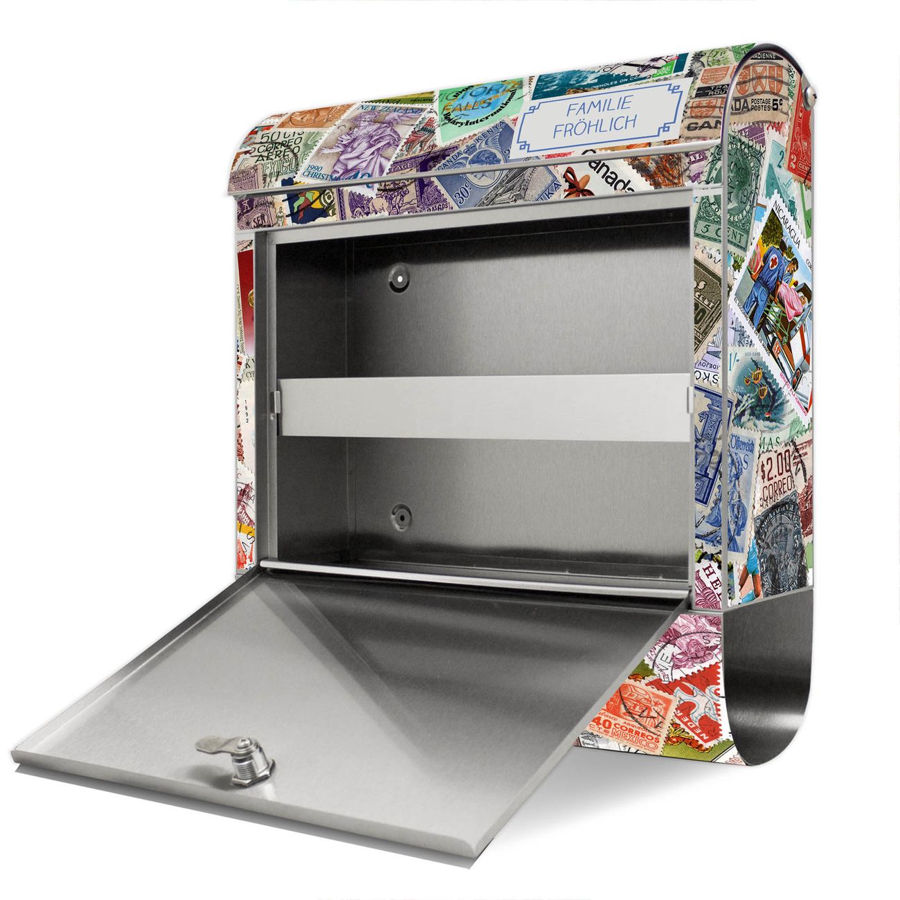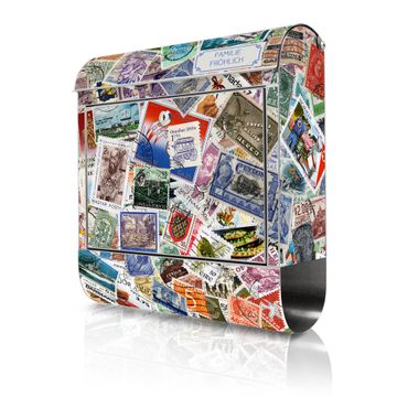 Wandbriefkasten Edelstahl Motiv Briefmarken