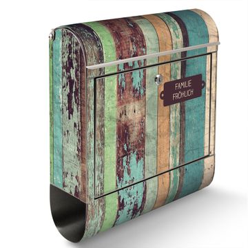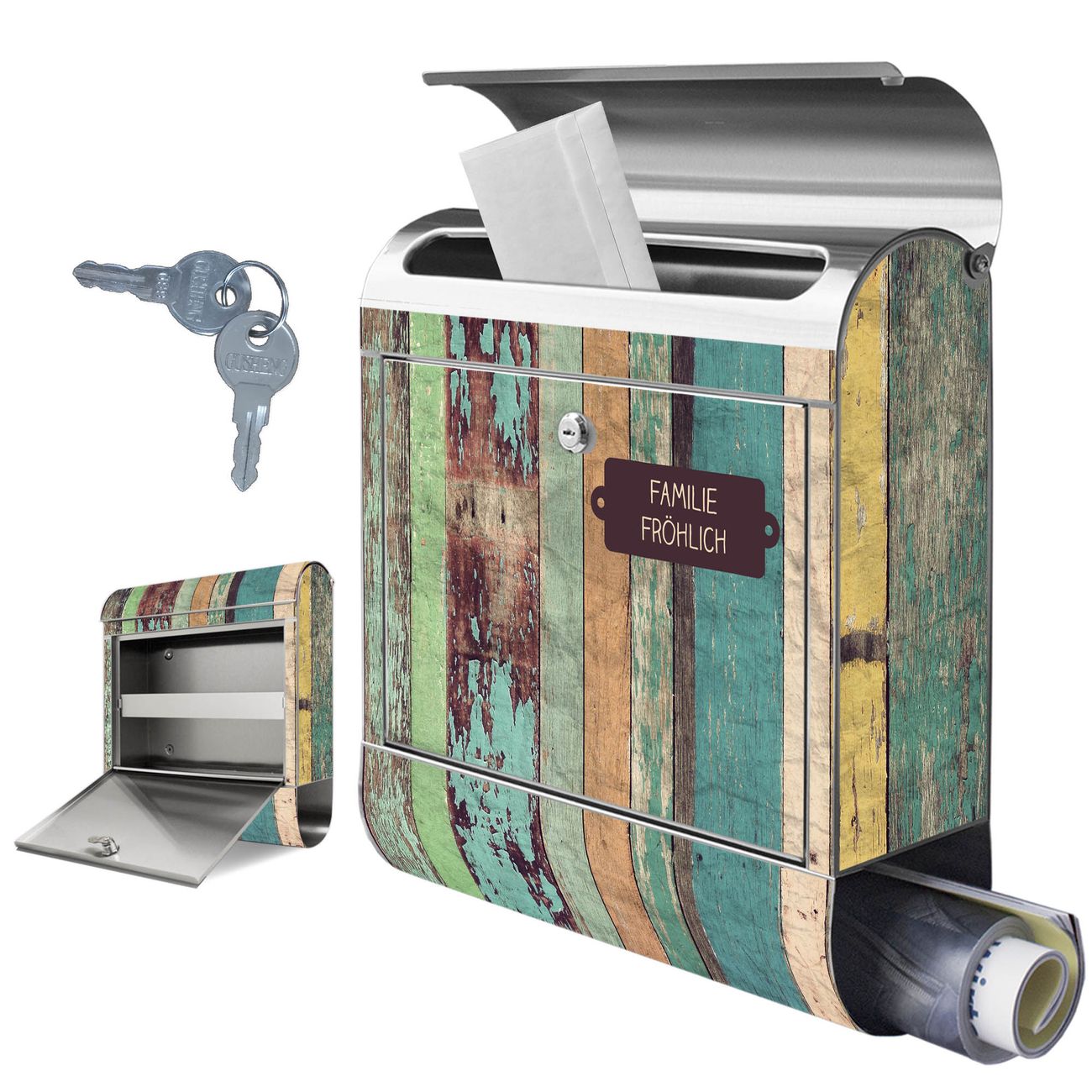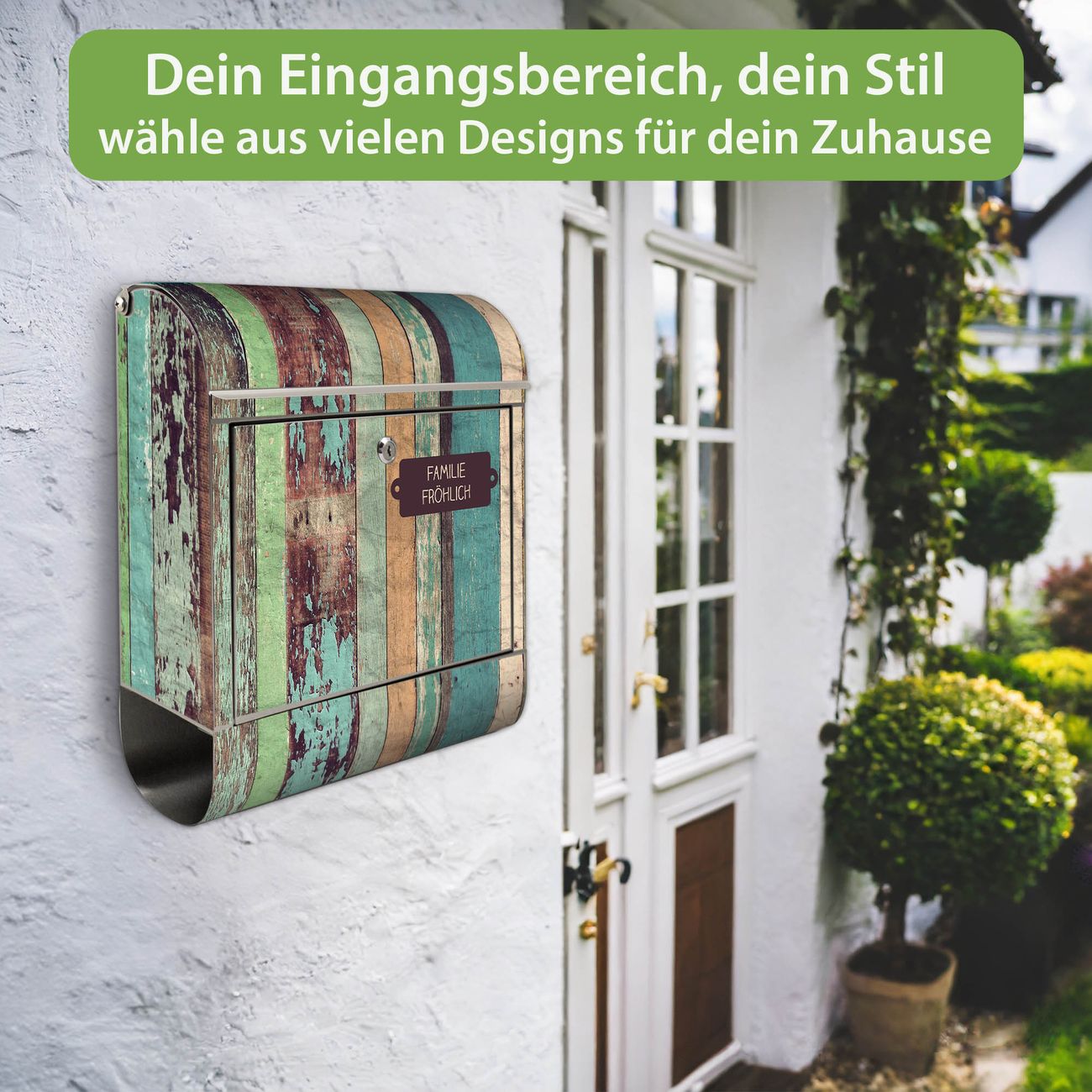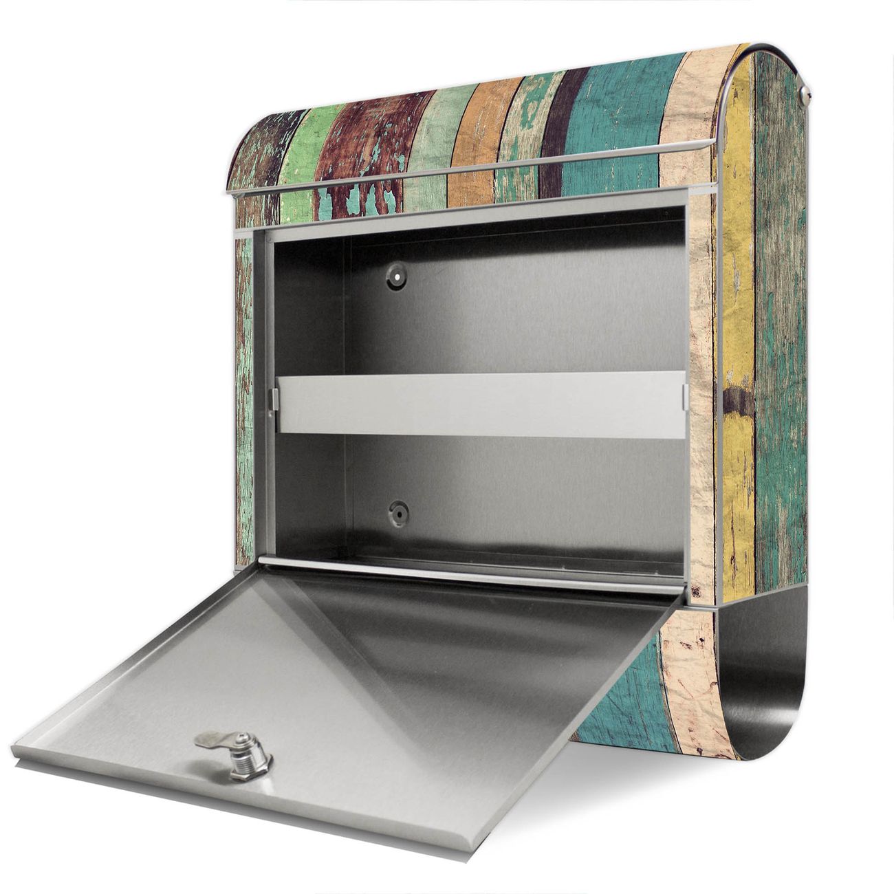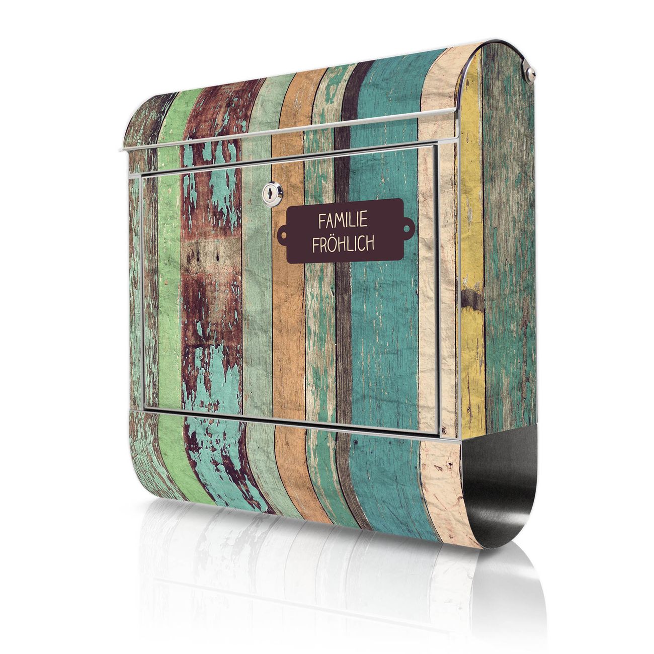 Wandbriefkasten Edelstahl Motiv Bunte Bretterwand