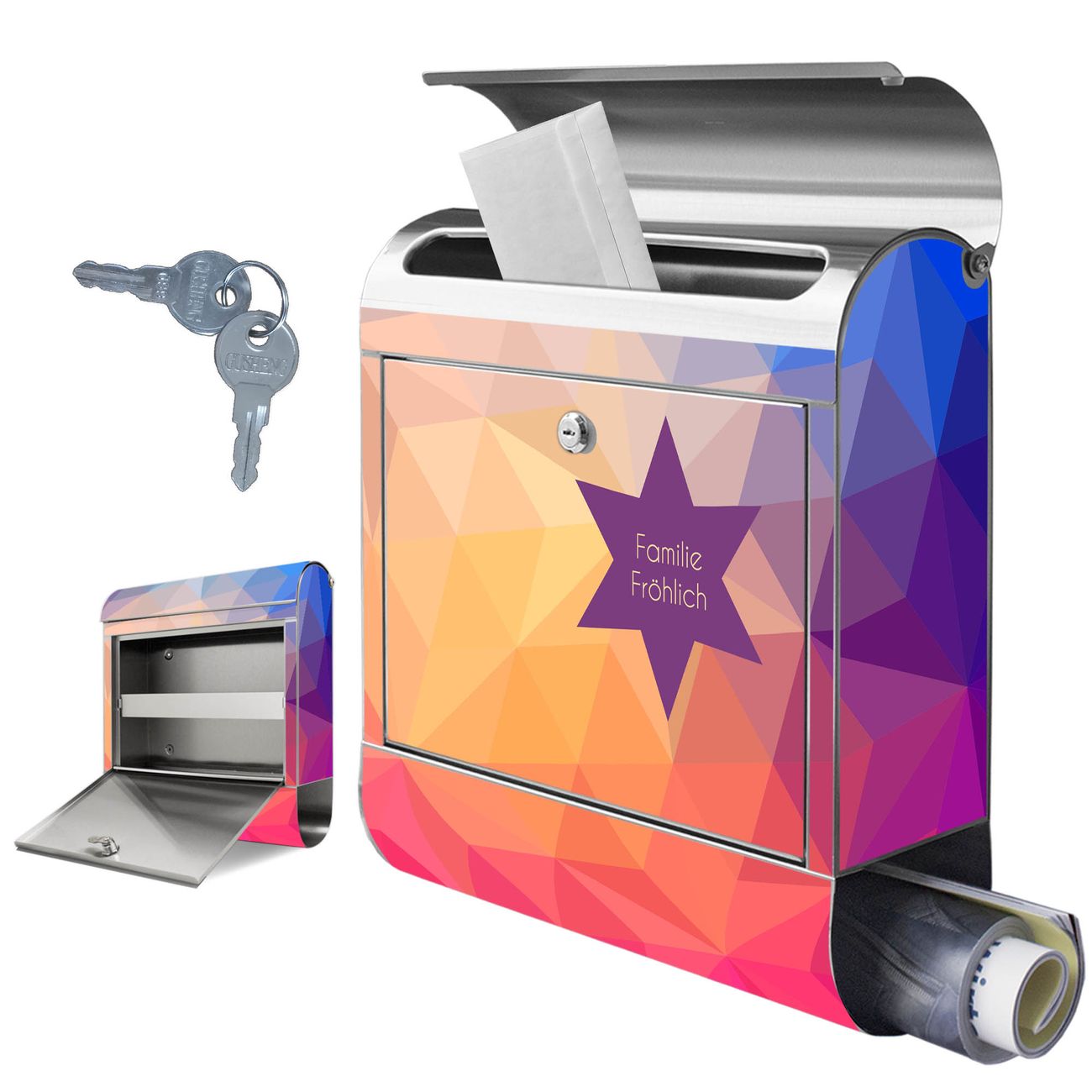 Wandbriefkasten Edelstahl Motiv Bunte Kristalle