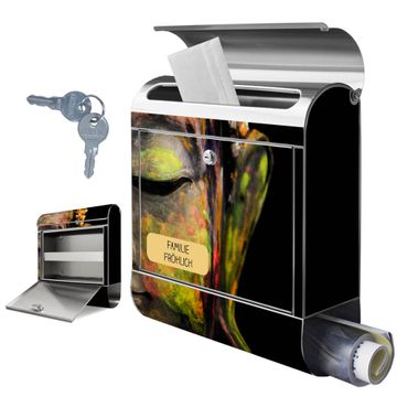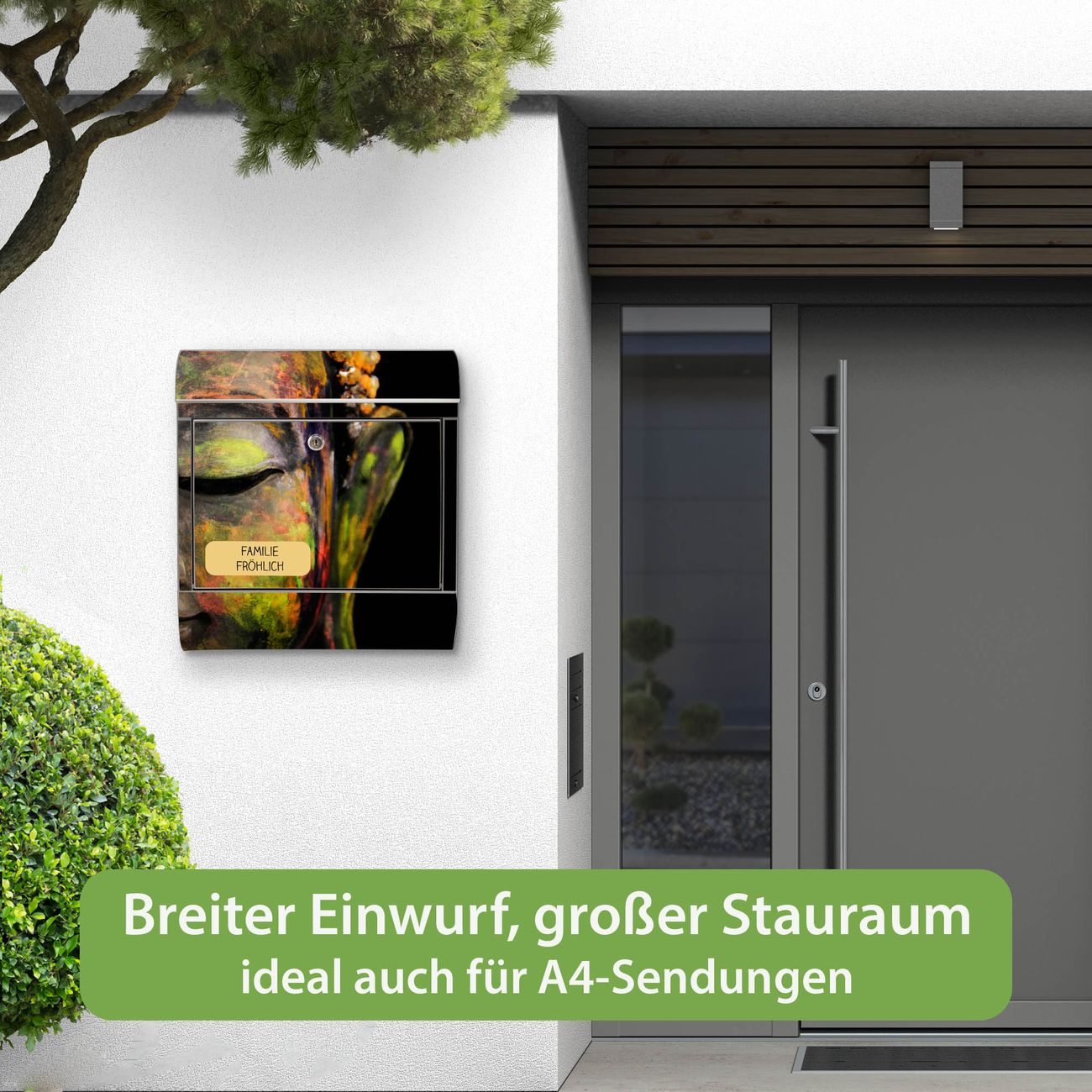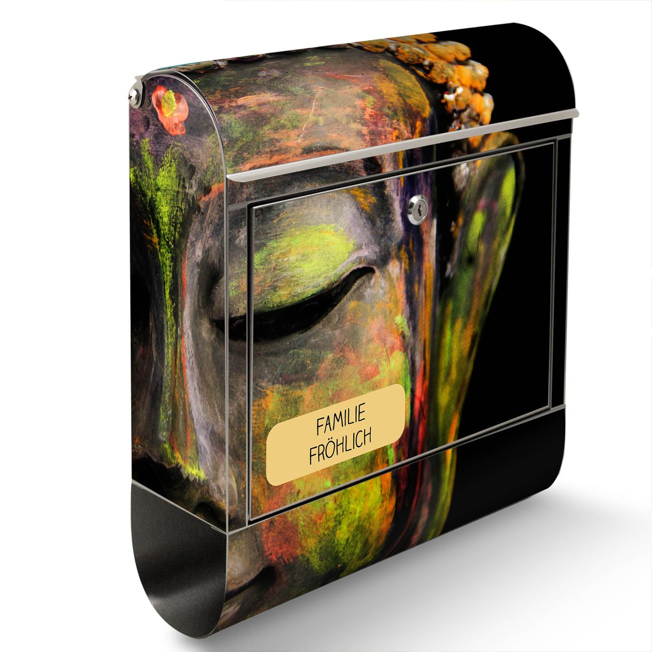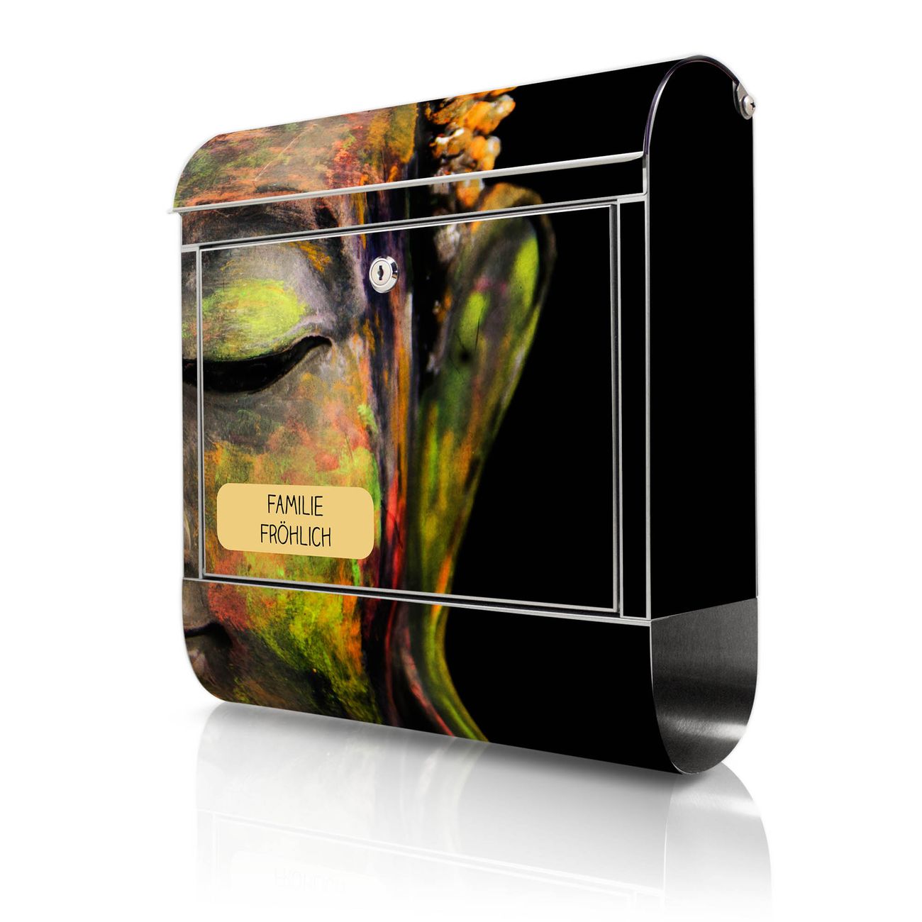 Wandbriefkasten Edelstahl Motiv Bunter Buddha