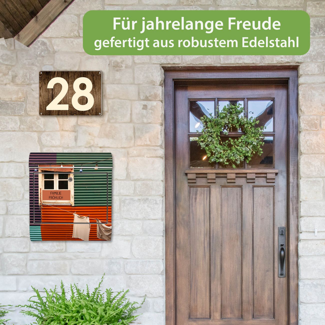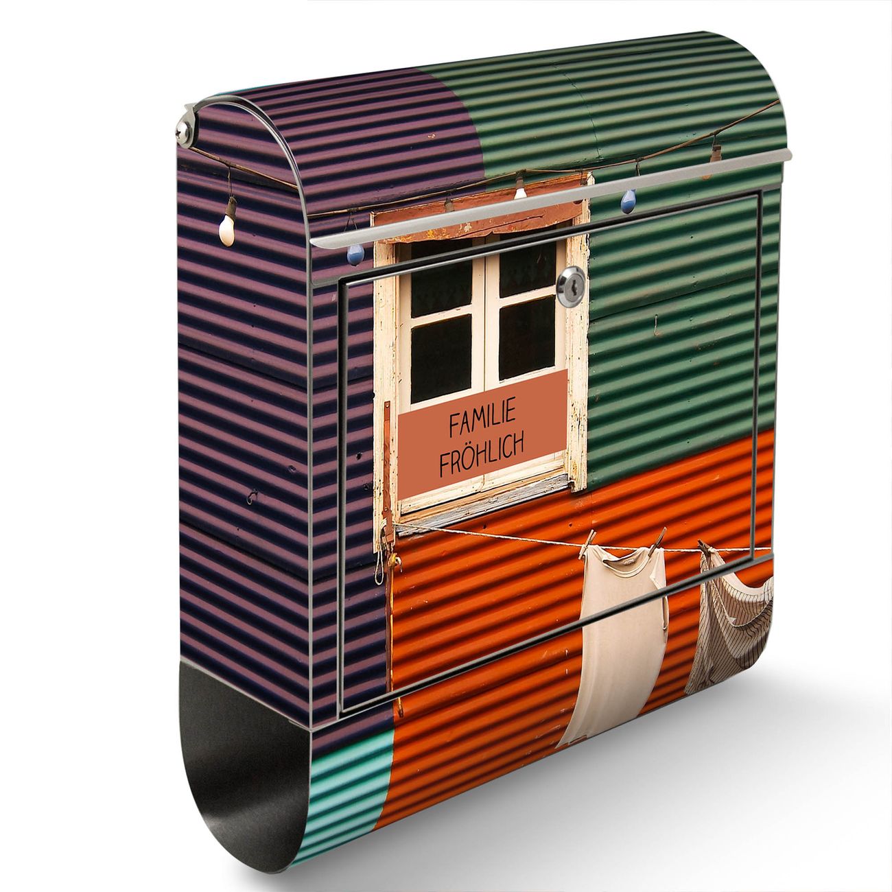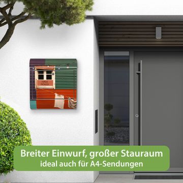 Wandbriefkasten Edelstahl Motiv Buntes Haus