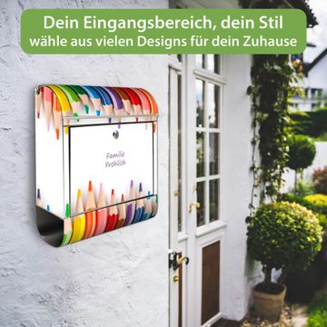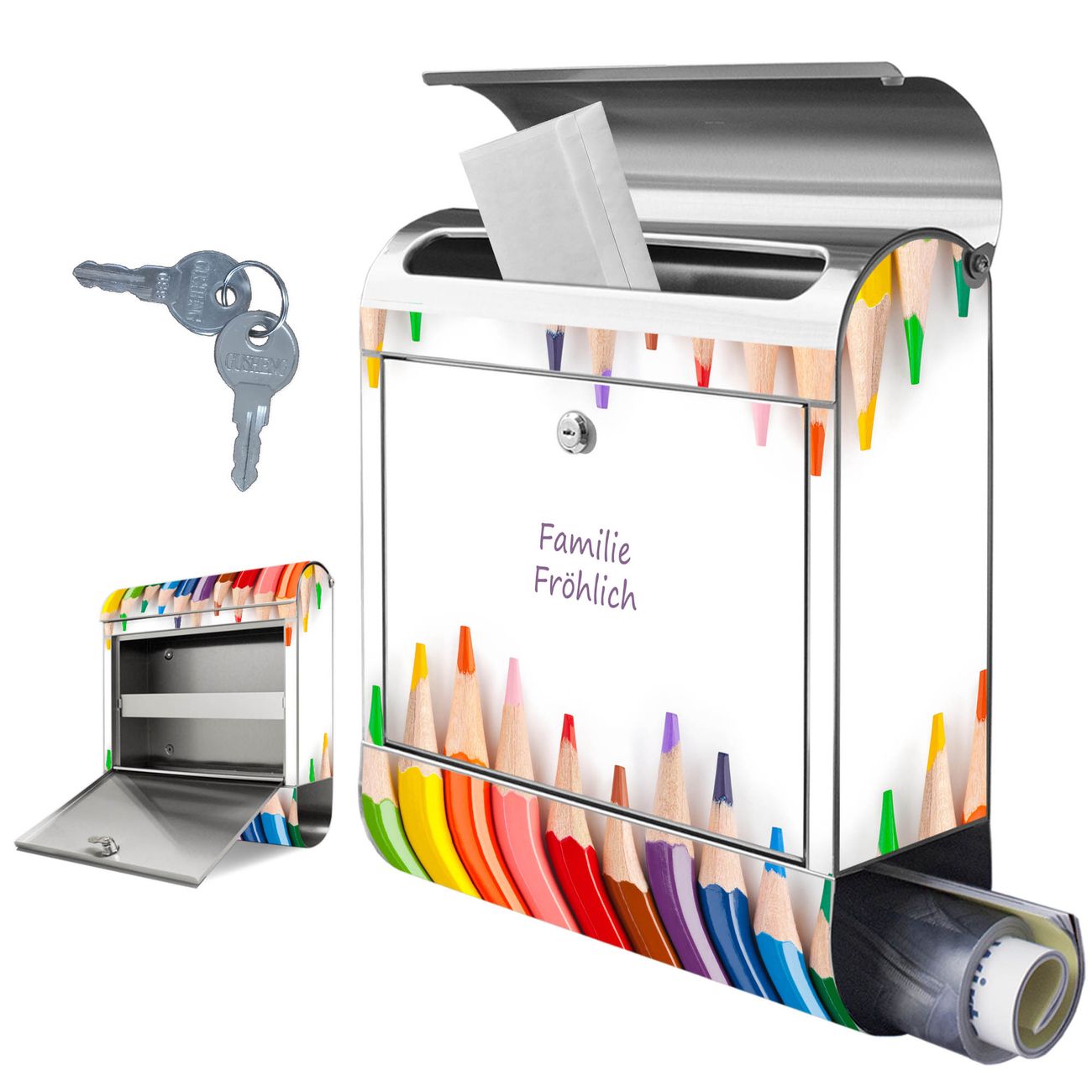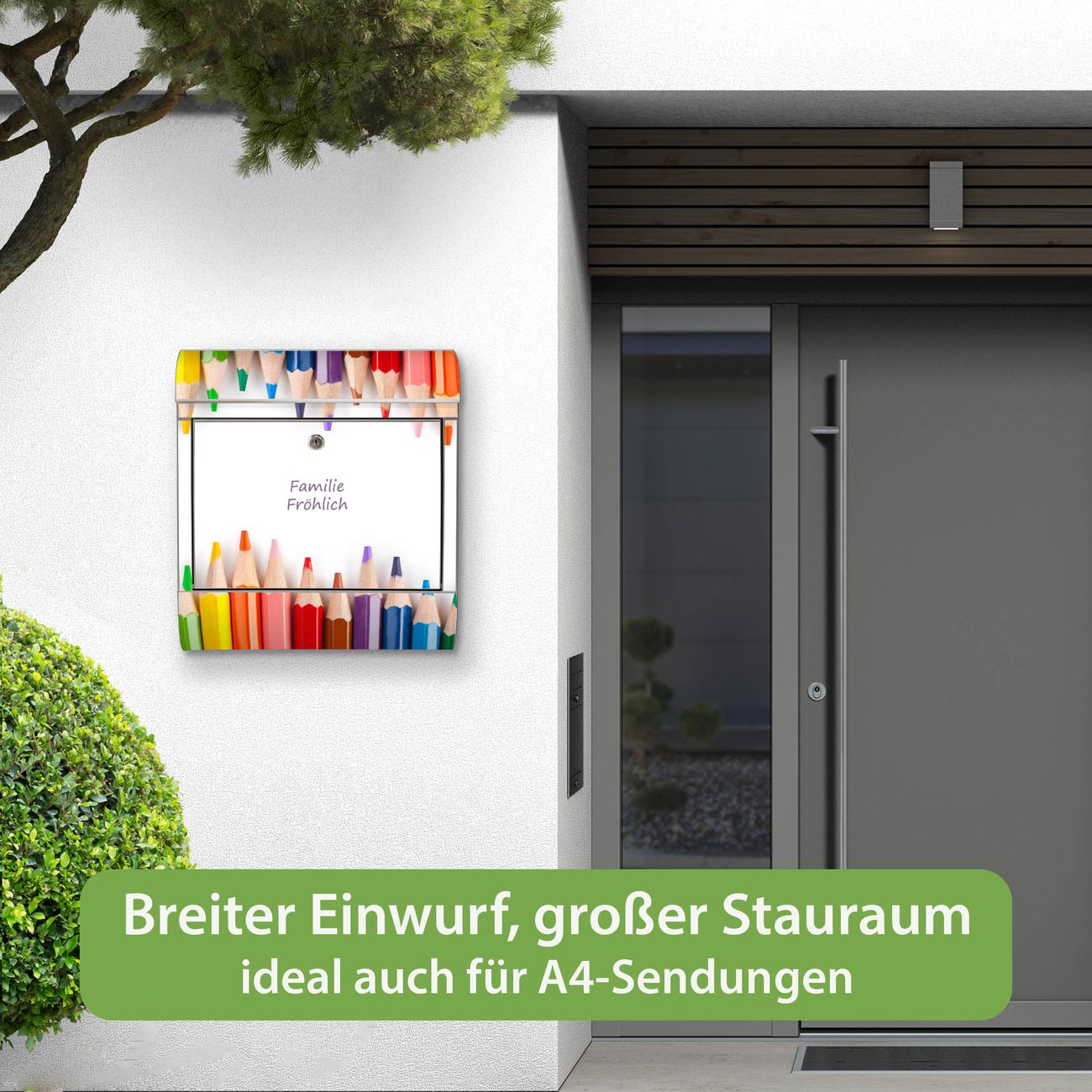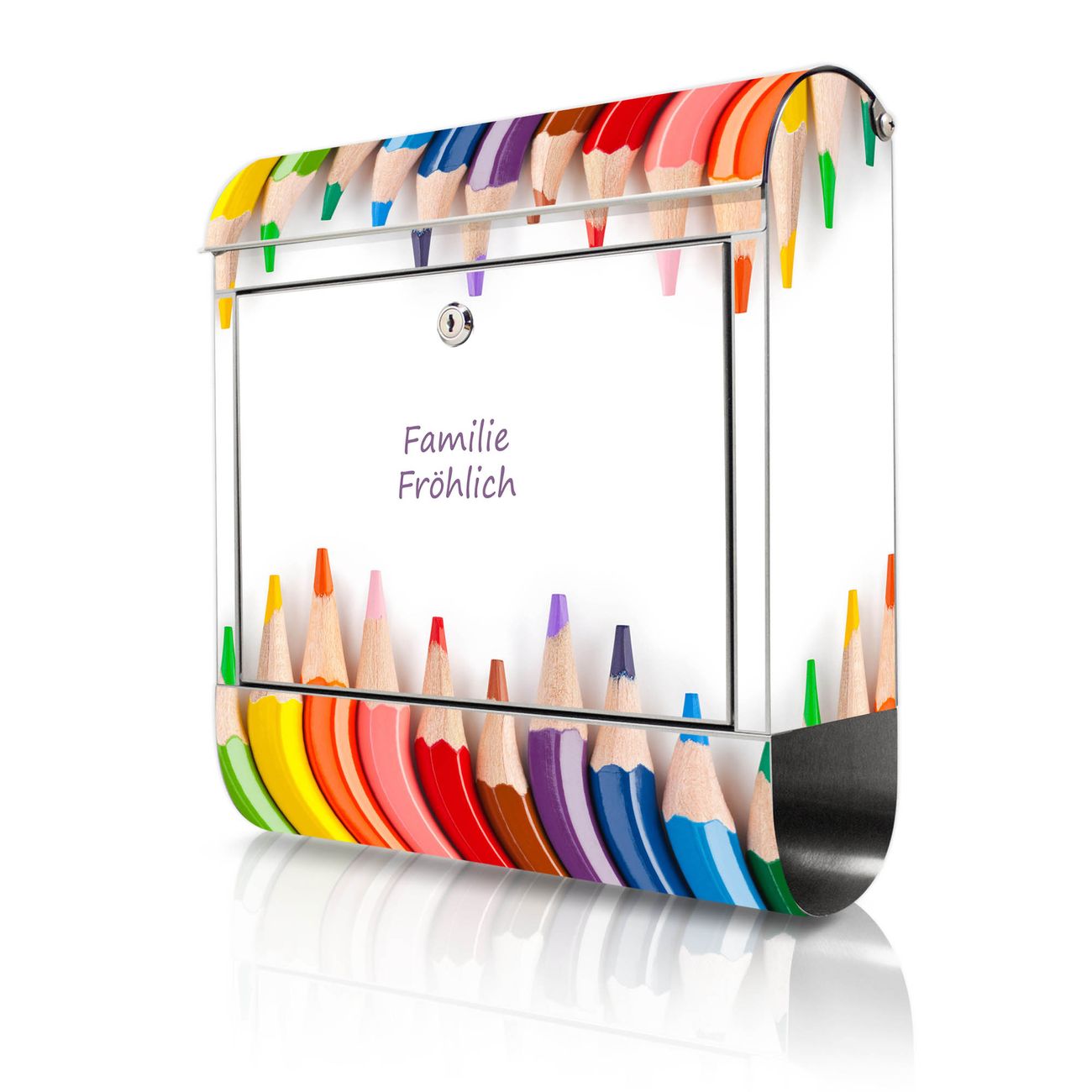 Wandbriefkasten Edelstahl Motiv Buntstifte