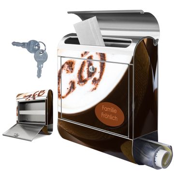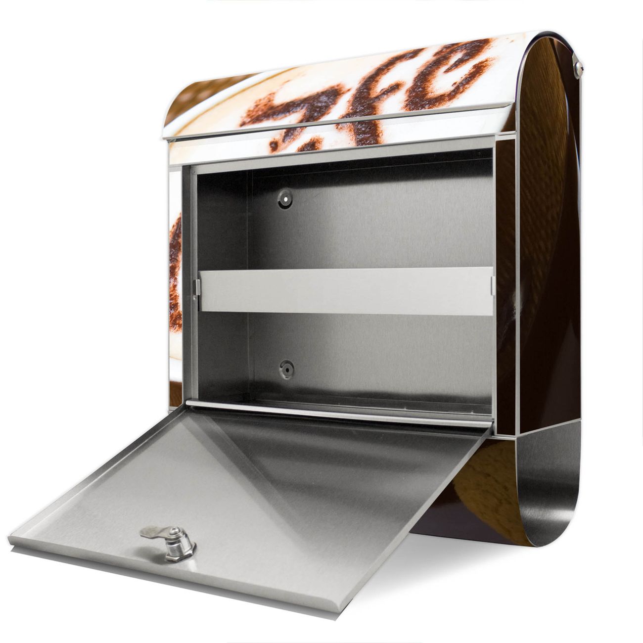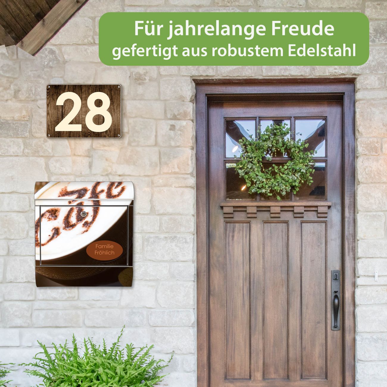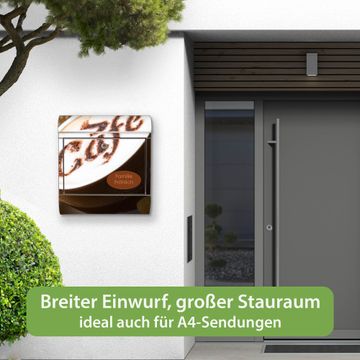 FUNKTION: Der banjado Edelstahl Briefkasten mit Motiv Motiv Cafe bietet Ihnen mit seinem Fassungsvermögen genügend Platz auch für große A4 Sendungen. Das integrierte Zeitungsfach eignet sich hervorragend um unkompliziert die Tageszeitung zu fassen. Auf Wunsch können Sie bei uns den passenden Ständer kaufen und so aus dem Wandbriefkasten einen Standbriefkasten machen. DESIGN: Der Motivbriefkasten hat ein sehr ansprechendes und ausgefallenes Design, damit entlocken Sie Ihren Nachbarn und dem Postboten ein Lächeln. Heben Sie Sich ab von der tristen grauen Masse ohne auf Funktionalität zu verzichten. DETAILS: Der Design Briefkasten mit Motiv Motiv Cafe besteht aus hochwertigem 18/0 Edelstahl. Das Motiv besteht aus einer wetter- und UV-resistenten Folie, die mit einem Schutzlaminat überzogen ist. Der Briefkasten wird mit Montagematerial und zwei Schlüsseln geliefert. NUTZEN: Sie können diesen Briefkasten sowohl als Wandbriefkasten montieren oder einen passenden Ständer auswählen und als Standbriefkasten einbetonieren. Die Größe bietet genügend Platz für Sendungen aller Art, das hochwertige Edelstahl ist rostfrei und die Motivfolie absolut wetterfest. SCHUTZ: Um Ihre Post optimal vor Witterungseinflüssen wie Starkregen zu schützen, empfehlen wir, den Briefkasten geschützt anzubringen. BANJADO: Ihr Briefkasten wird in Sachsen in einer kleinen Manufaktur von Hand veredelt. Die Motivfolie ist lösungsmittelfrei und schutzlaminiert, dies sorgt für einen langen Halt. Wir legen großen Wert auf die Verbindung von Funktionalität und Design. Sie erhalten Handarbeit aus Sachsen.