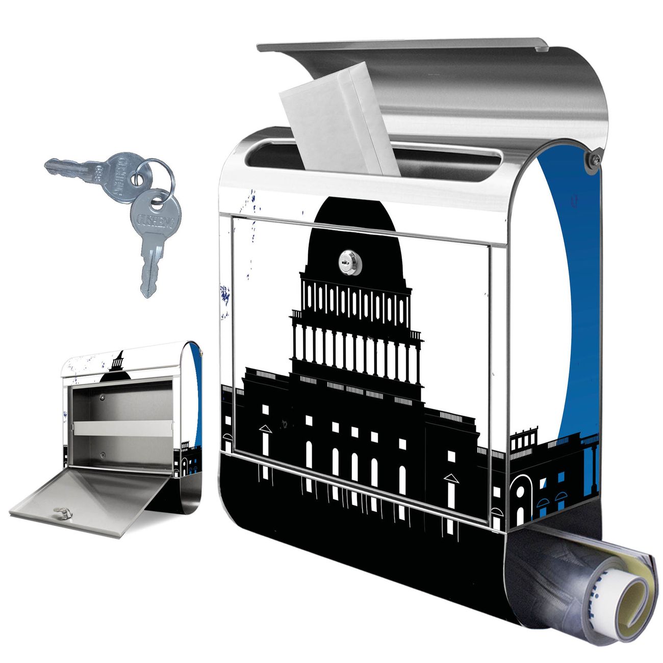 Wandbriefkasten Edelstahl Motiv City Poster Washington