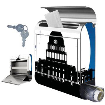 FUNKTION: Der banjado Edelstahl Briefkasten mit Motiv Motiv City Poster Washington bietet Ihnen mit seinem Fassungsvermögen genügend Platz auch für große A4 Sendungen. Das integrierte Zeitungsfach eignet sich hervorragend um unkompliziert die Tageszeitung zu fassen. Auf Wunsch können Sie bei uns den passenden Ständer kaufen und so aus dem Wandbriefkasten einen Standbriefkasten machen. DESIGN: Der Motivbriefkasten hat ein sehr ansprechendes und ausgefallenes Design, damit entlocken Sie Ihren Nachbarn und dem Postboten ein Lächeln. Heben Sie Sich ab von der tristen grauen Masse ohne auf Funktionalität zu verzichten. DETAILS: Der Design Briefkasten mit Motiv Motiv City Poster Washington besteht aus hochwertigem 18/0 Edelstahl. Das Motiv besteht aus einer wetter- und UV-resistenten Folie, die mit einem Schutzlaminat überzogen ist. Der Briefkasten wird mit Montagematerial und zwei Schlüsseln geliefert. NUTZEN: Sie können diesen Briefkasten sowohl als Wandbriefkasten montieren oder einen passenden Ständer auswählen und als Standbriefkasten einbetonieren. Die Größe bietet genügend Platz für Sendungen aller Art, das hochwertige Edelstahl ist rostfrei und die Motivfolie absolut wetterfest. SCHUTZ: Um Ihre Post optimal vor Witterungseinflüssen wie Starkregen zu schützen, empfehlen wir, den Briefkasten geschützt anzubringen. BANJADO: Ihr Briefkasten wird in Sachsen in einer kleinen Manufaktur von Hand veredelt. Die Motivfolie ist lösungsmittelfrei und schutzlaminiert, dies sorgt für einen langen Halt. Wir legen großen Wert auf die Verbindung von Funktionalität und Design. Sie erhalten Handarbeit aus Sachsen.
