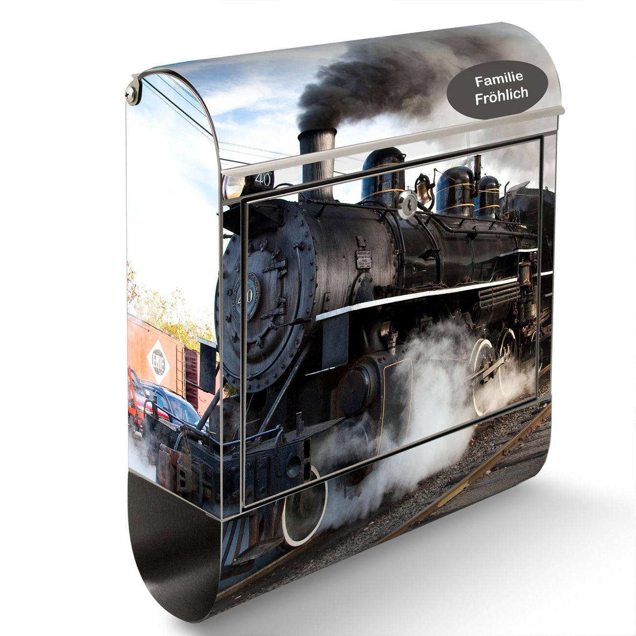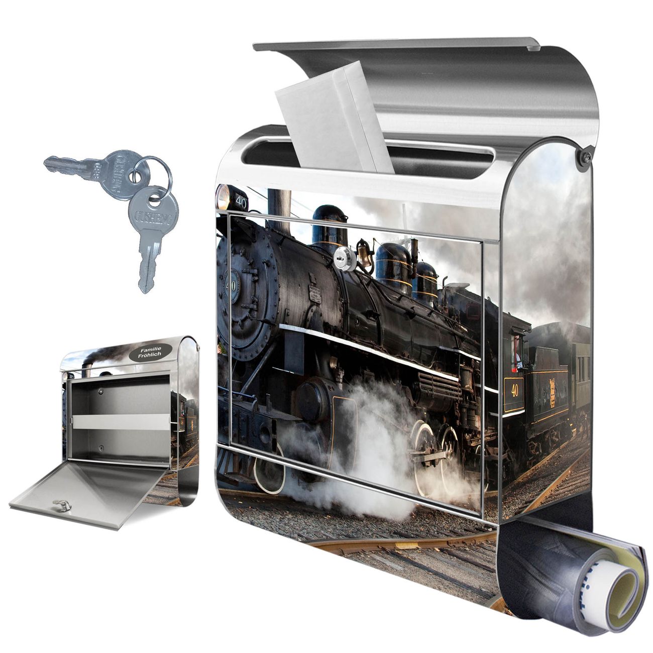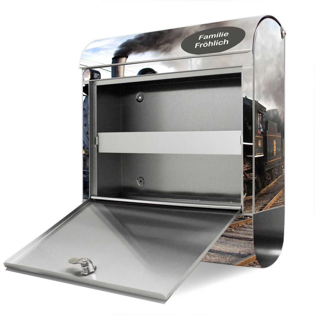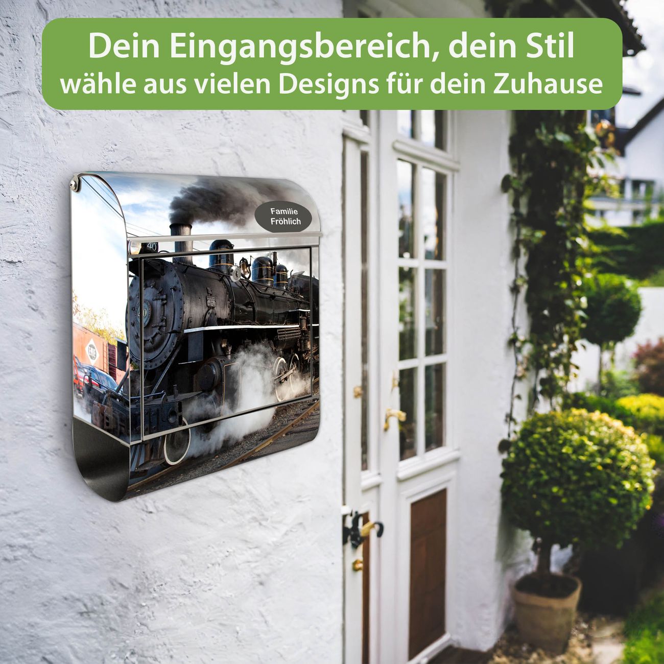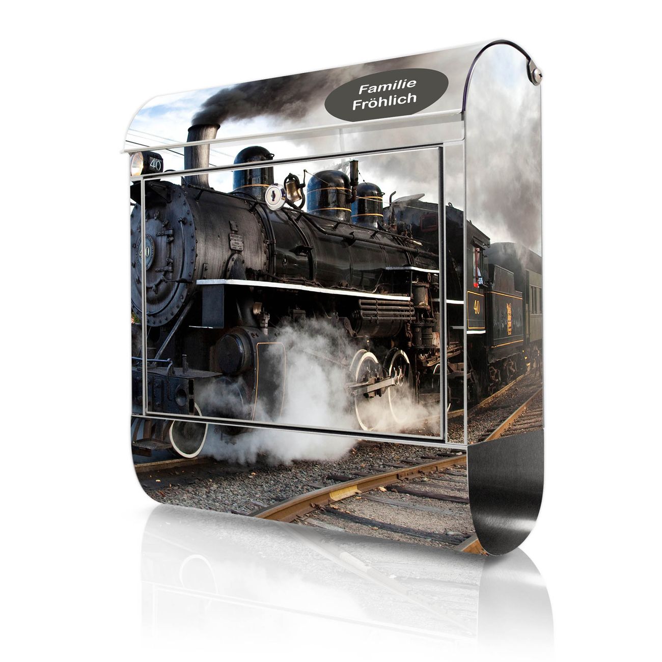 Wandbriefkasten Edelstahl Motiv Dampflok