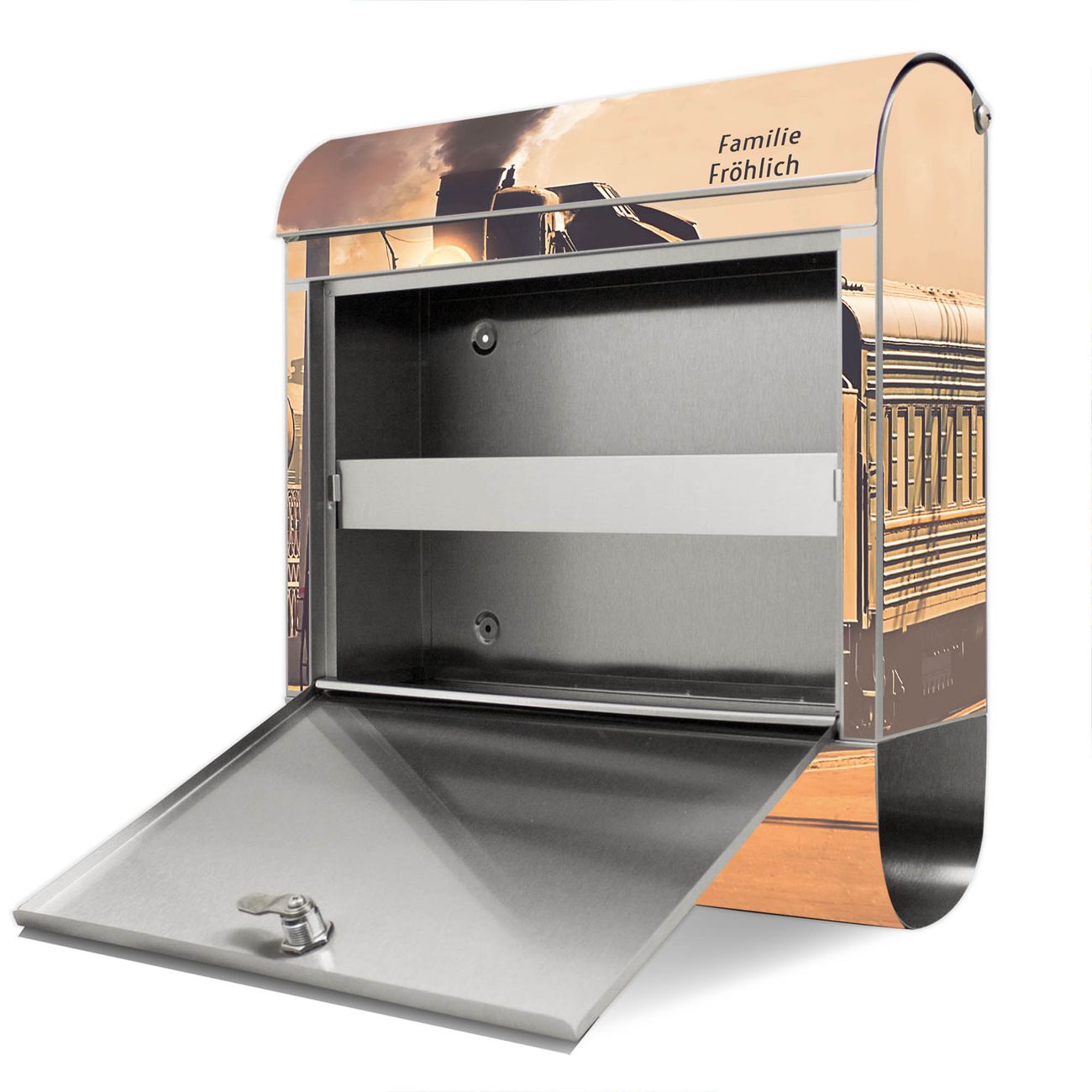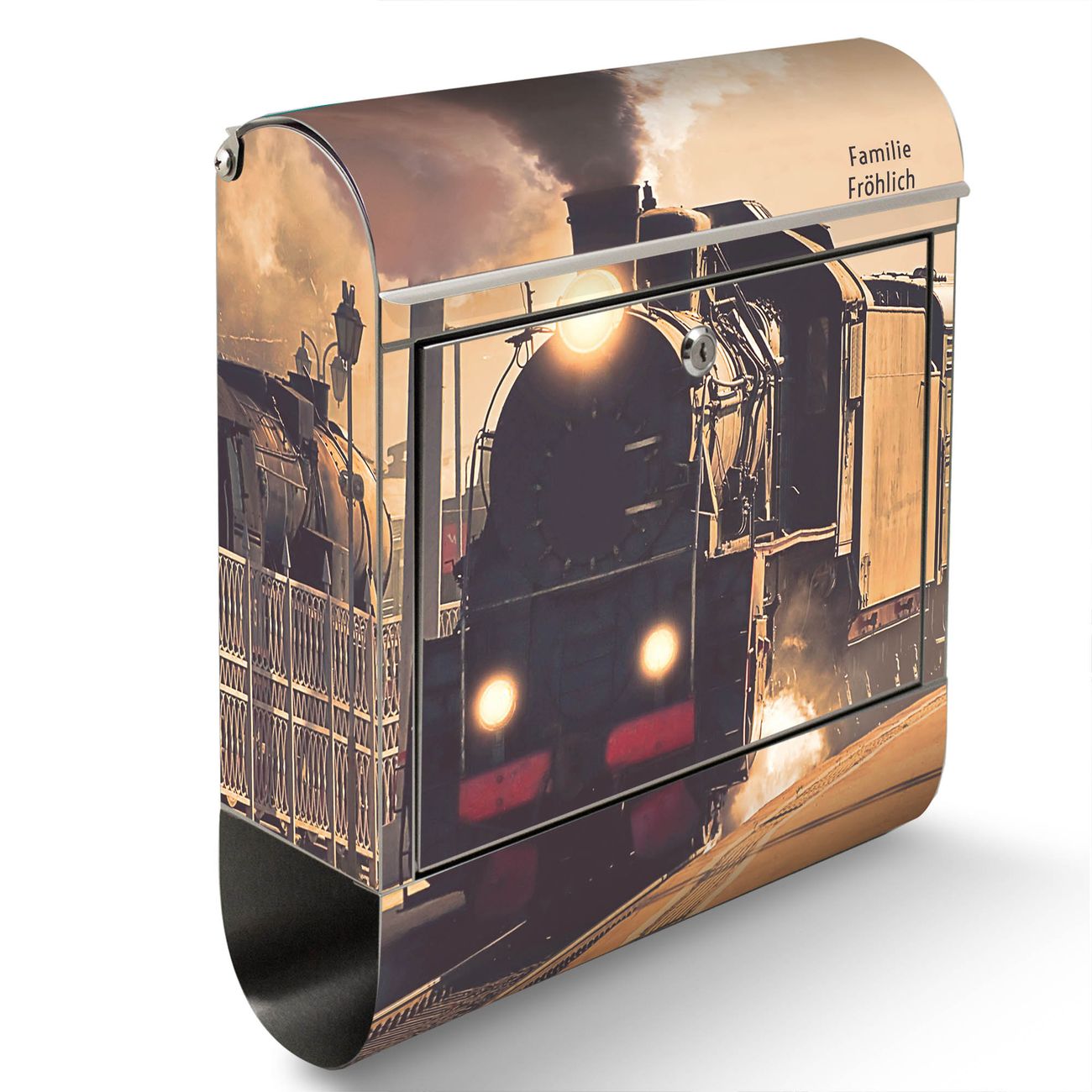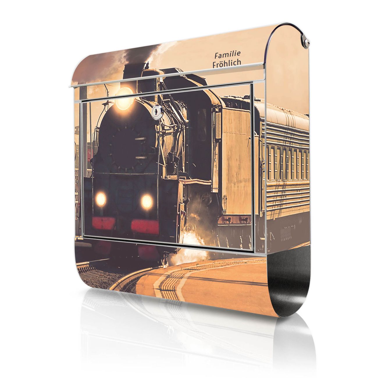 Wandbriefkasten Edelstahl Motiv Einfahrender Zug