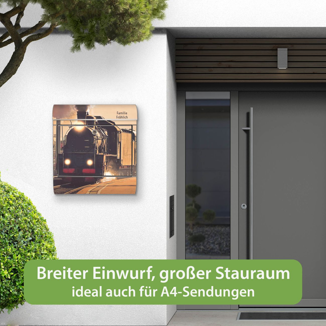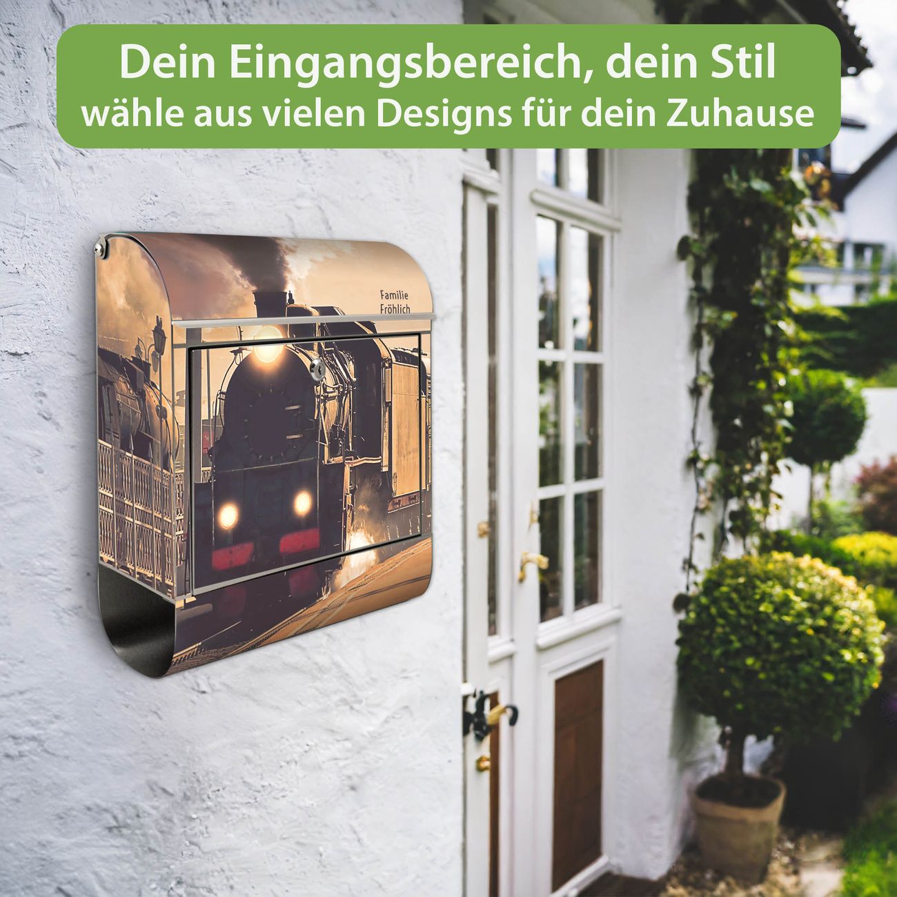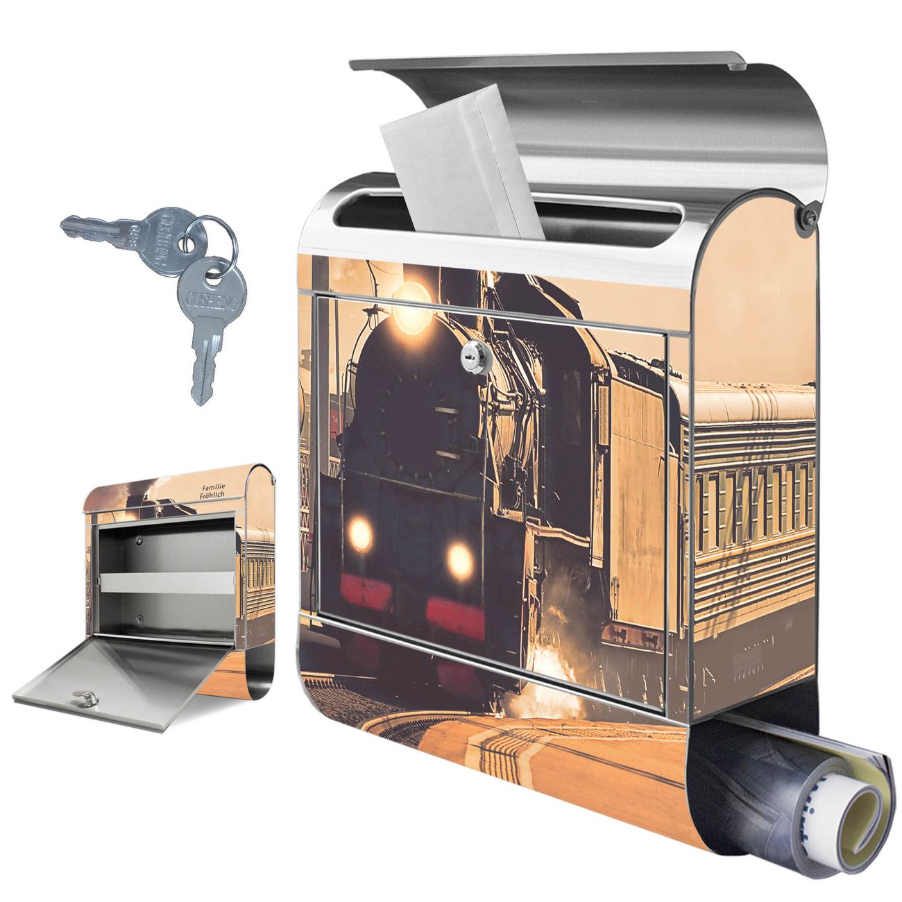 Wandbriefkasten Edelstahl Motiv Einfahrender Zug